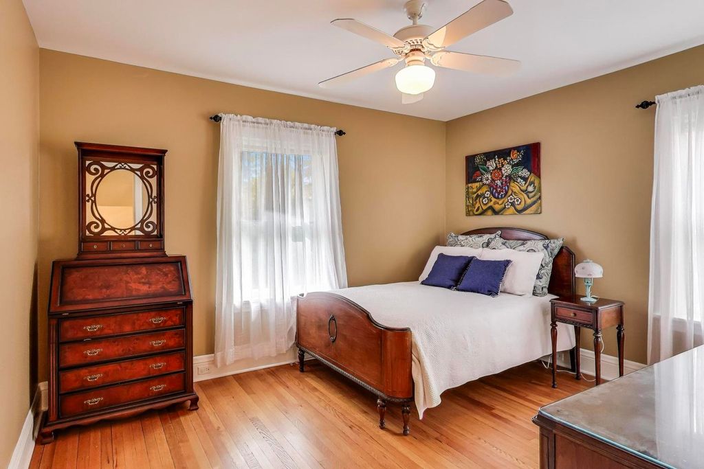 Fabulous opportunity to move into the sought after CAGE area of Wilmette! This classic East Wilmette home has five bedrooms, 3.1 baths on a 50 x 187 lot, including a hard to find side driveway. The beautiful wood paneled foyer welcomes you into this bright and spacious home. Front four season room is perfect for an office or sitting room. Formal living room with a gas-starter, wood burning fireplace opens to dining area. Refreshed, bright kitchen with an eat-in area has updated appliances, quartz countertops, marble backsplash and painted cherry cabinets. Kitchen overlooks the spacious family room with a brick fireplace, plus wall to wall sliders that open to the back deck and yard. Side mudroom is huge, plenty of storage for all of your belongings, plus heated floors. Upstairs boasts a large primary suite with a full bath, including a jetted soaker tub and separate shower. Three additional bedrooms, hall bath and laundry room complete the space. Third floor has a bonus bedroom/office space with a full bath and storage areas. Basement has a rec room with radiant heated floors and loads of storage. Fabulous landscaped and fenced-in yard with deck and oversized two car garage. Walk to EVERYTHING location...town, train, parks, Central Elementary, Gilson Beach, Elmwood Dunes and Plaza del Lago!