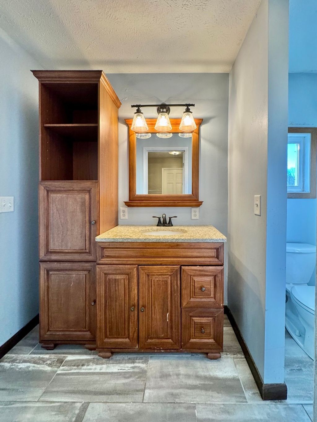 3 bedroom Ranch features main floor laundry, 2.5 baths on main level, master bath updated w tiled walk-in shower and spacious walk-in closet. Partially finished basement with wet bar/tv area, half bath, family room and craft/work room with storage. Large partly enclosed deck for entertaining and amazing sunset watching! Storage shed and power generator. Spacious garage with workbench and tons of storage. All kitchen appliances are less than 5yrs. Washer/dryer and 2 tvs stay. Electric water heater less than 5 yrs. Septic cleaned summer '24. SOLD AS IS
