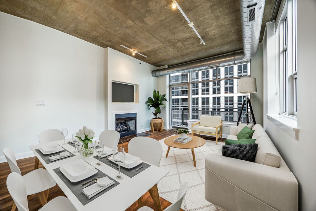 MULTIPLE OFFERS - H&B DUE SUNDAY 3/1 @ 7PM. Beautifully renovated 2 bedroom, 2 bath plus den corner unit in the heart of Chicago's vibrant South Loop. This bright and spacious home features brand new flooring, fresh paint, and a modern kitchen with stainless steel appliances. The open layout offers high ceilings, a fireplace, and a private wraparound balcony with Lake Michigan views. A desirable split bedroom floor plan offers ideal privacy, with both bedrooms fully enclosed. The versatile den provides the perfect space for a home office, reading nook, or guest area. An in-unit washer/dryer adds to everyday convenience. Move in ready and impeccably maintained. Building offers 24-hour door staff, well equipped fitness center, receiving room, on site management, and an impressive lobby. Prime location near Grant Park, the lakefront, museums, restaurants, shopping, and public transportation. Garage parking available for $25,000. Taxes do not reflect the homeowner's exemption and may be lower for an owner occupant.