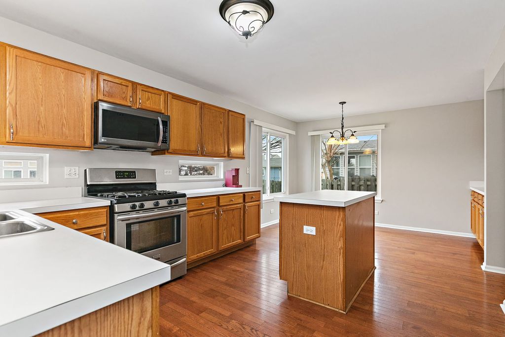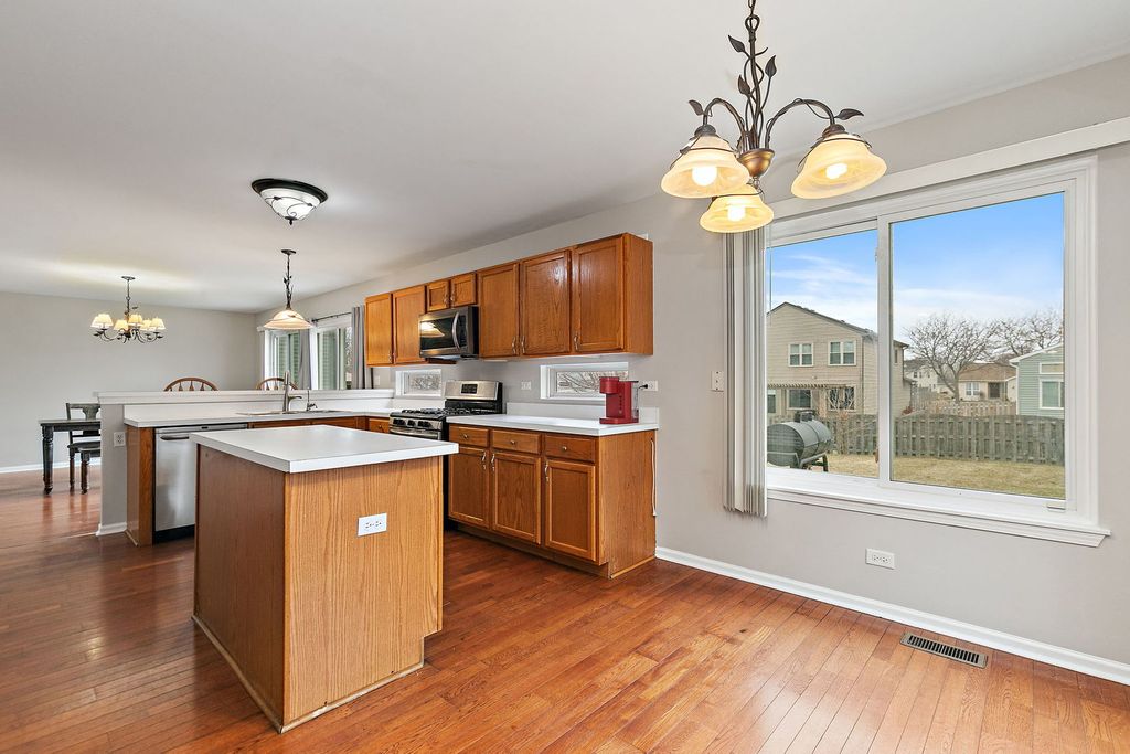 Quiet cul-de-sac living meets top-rated Huntley schools! This 3BR, 2.5BA home features a spacious open floor plan, finished basement, 2-car garage, and ideally situated on a large fenced lot in a quiet cul-de-sac. The spacious living room welcomes you in with vaulted ceilings and hardwood flooring that continues seamlessly into the kitchen. The kitchen is an entertainer's delight, offering two large dining areas, breakfast bar, coffee bar, center island, abundant cabinet & counter space, all stainless steel appliances, and pantry closet. A main-level laundry room with utility sink adds everyday convenience. Upstairs, the generous primary suite features a walk-in closet plus additional closet space and an en-suite bath with dual vanity and water closet with tub/shower combo. Two additional bedrooms and a full hall bath complete the second level. The finished basement features parquet wood flooring and provides excellent additional living space, perfect for a recreation room, home office, or workout area. A separate storage/utility room adds functionality. Approx ages of updates: Entire Main & Upper levels freshly painted (2026), Water Heater (2025), A/C (2024), Carpet (2023), Fridge/Microwave (2019), Windows (2015), Kitchen Sliding Door (2015), Roof/Siding (2014). Don't miss this move-in ready gem! Schedule your private tour today!