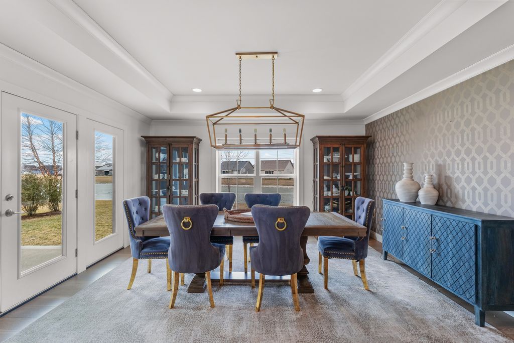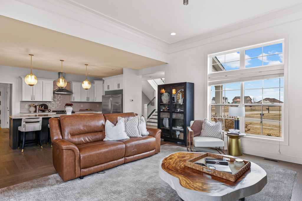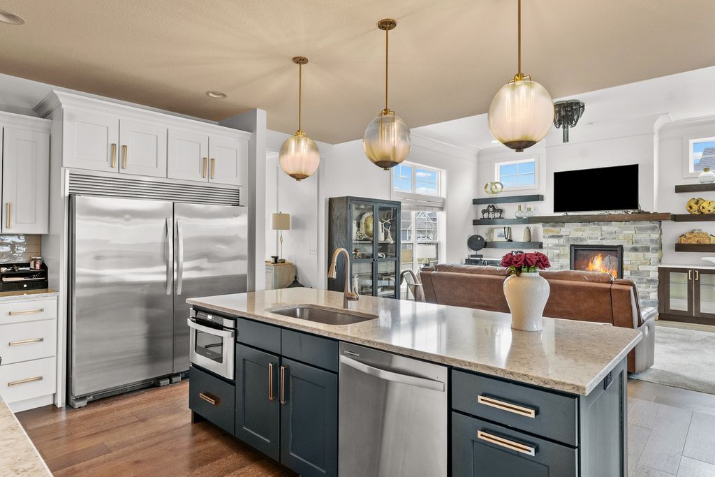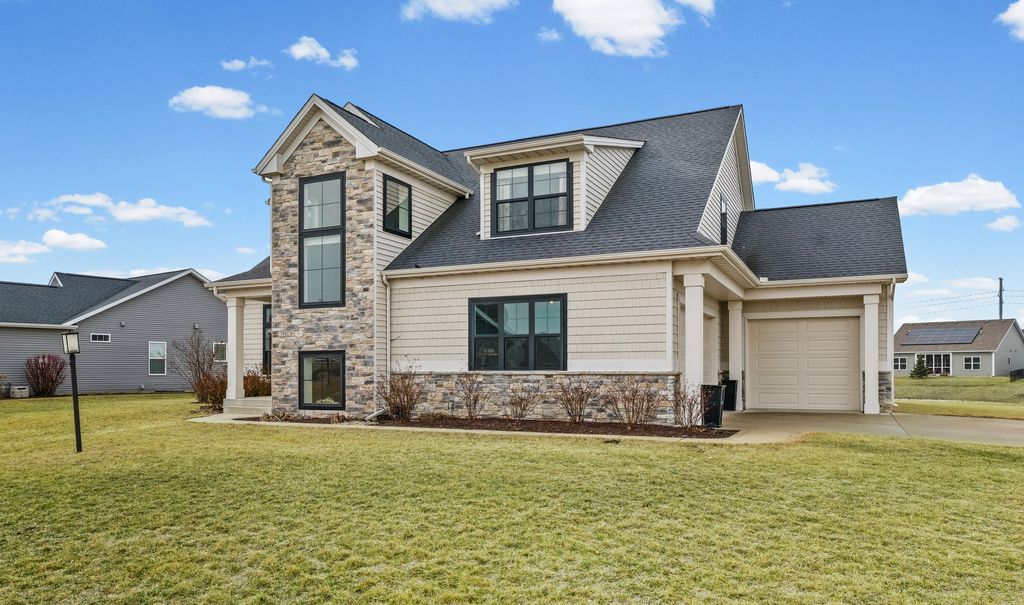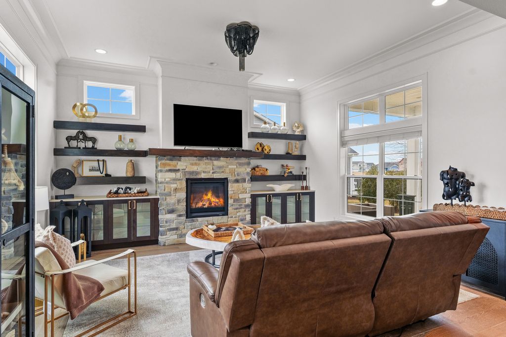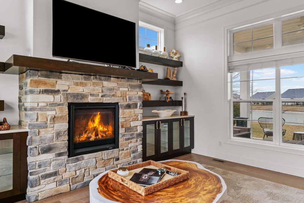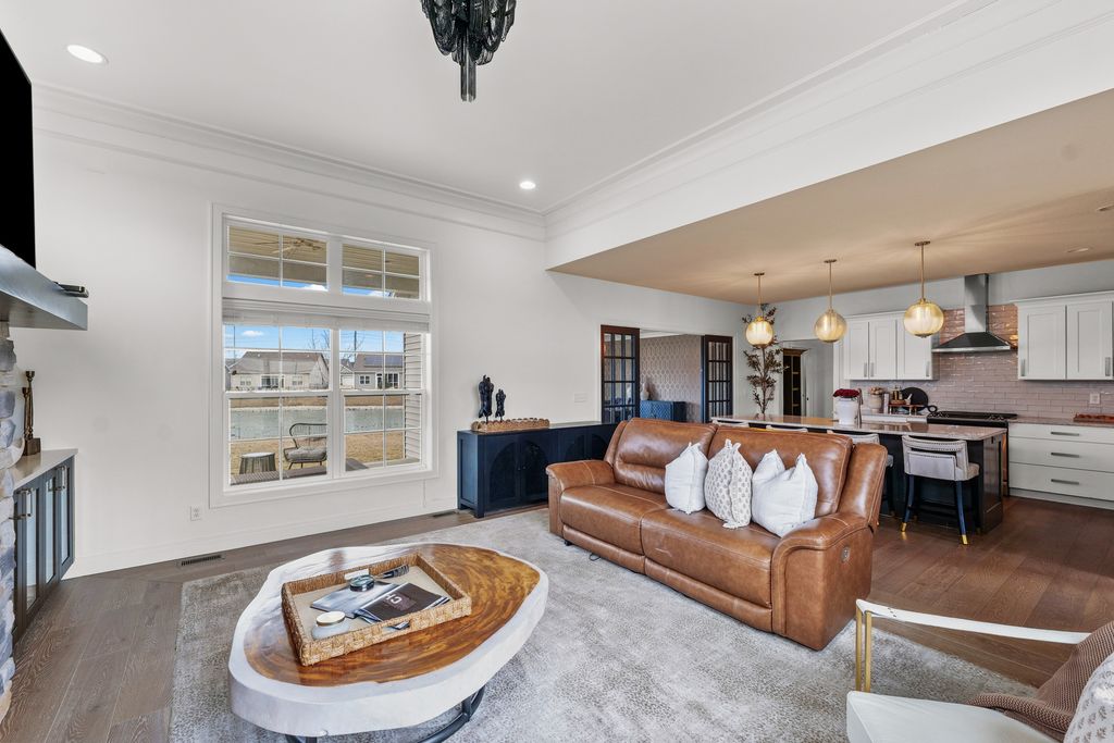 This beautiful home offers modern design, quality finishes, and exceptional living space throughout. The open-concept main level is filled with natural light and features custom built-ins, a striking stone fireplace, and seamless flow for everyday living and entertaining. The well-appointed kitchen includes a large island, stainless steel appliances, and elegant pendant lighting-perfect for gathering with family and friends. The primary suite provides a peaceful retreat with designer touches and a spa-inspired bathroom. A fully finished basement expands your living space with a dedicated movie theater, ideal for relaxing or hosting guests. Step outside to a covered patio overlooking serene lake views and a spacious backyard with excellent potential for an in-ground pool. Located in a highly regarded school district, in a friendly neighborhood, and meticulously cared for, this home combines modern comfort, style, and long-term value. You can't miss out!