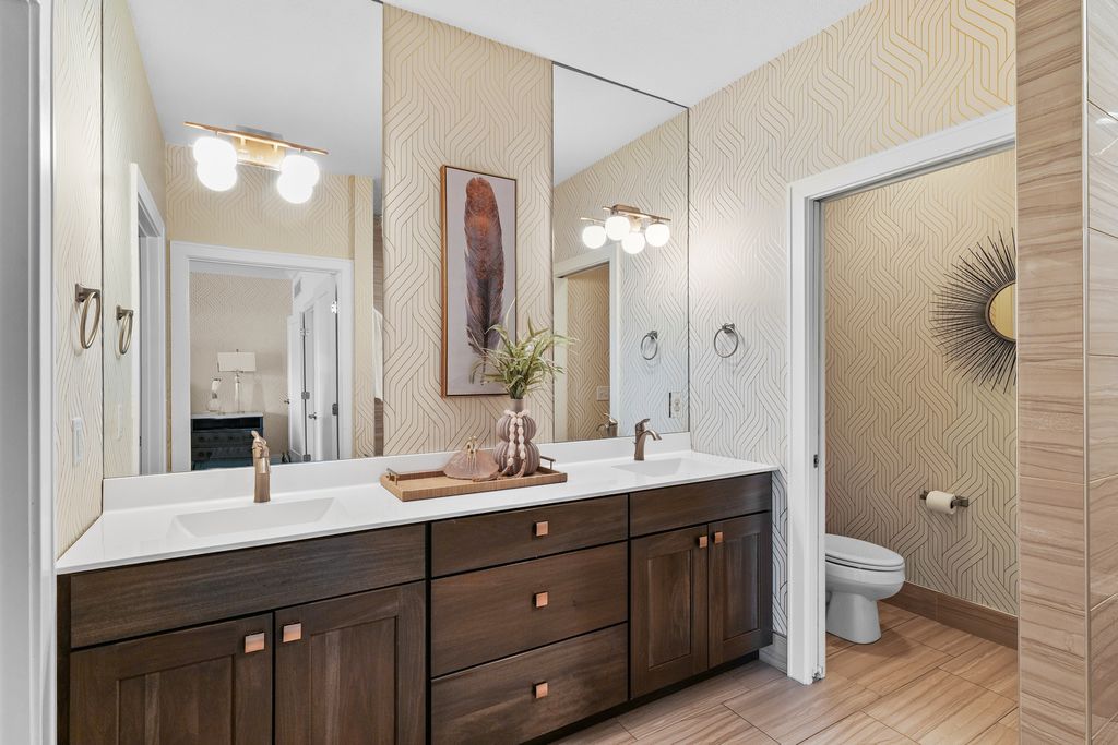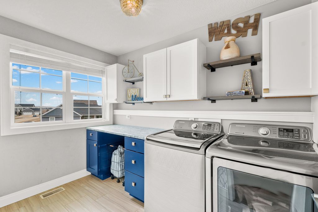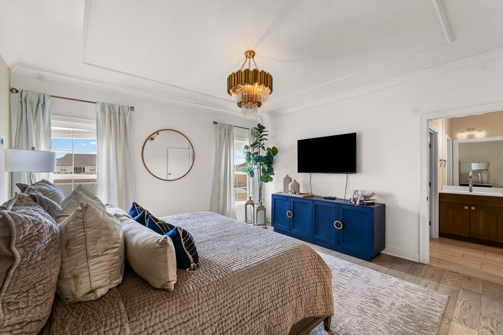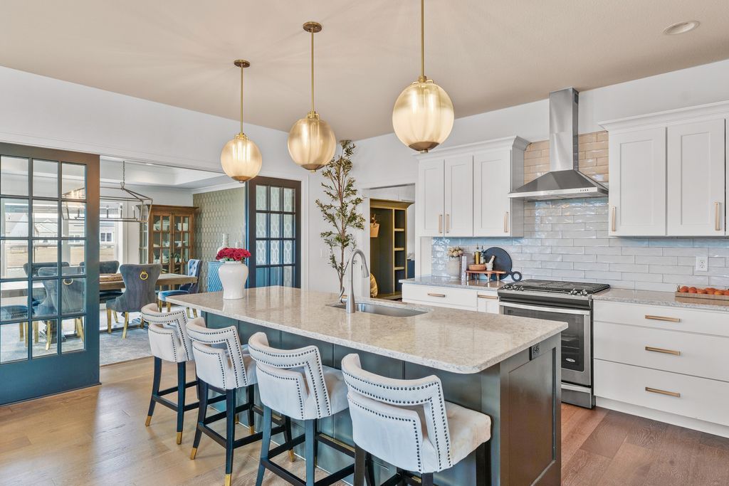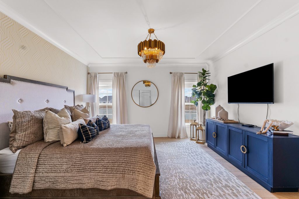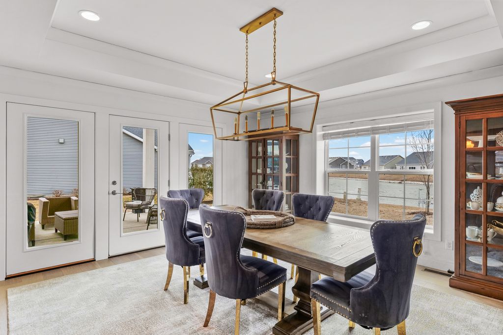 This beautiful home offers modern design, quality finishes, and exceptional living space throughout. The open-concept main level is filled with natural light and features custom built-ins, a striking stone fireplace, and seamless flow for everyday living and entertaining. The well-appointed kitchen includes a large island, stainless steel appliances, and elegant pendant lighting-perfect for gathering with family and friends. The primary suite provides a peaceful retreat with designer touches and a spa-inspired bathroom. A fully finished basement expands your living space with a dedicated movie theater, ideal for relaxing or hosting guests. Step outside to a covered patio overlooking serene lake views and a spacious backyard with excellent potential for an in-ground pool. Located in a highly regarded school district, in a friendly neighborhood, and meticulously cared for, this home combines modern comfort, style, and long-term value. You can't miss out!