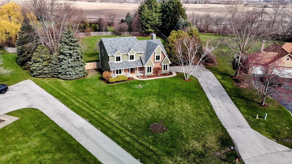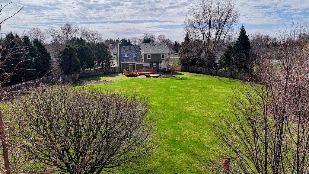 CUSTOM-BUILT and thoughtfully updated, this Heritage West home sits on a spacious 1.3-ACRE fenced lot in a quiet cul-de-sac, offering privacy and plenty of outdoor space. HARDWOOD FLOOR flow through a warm, inviting layout. The kitchen is a CHEF'S DREAM, with modern finishes, a center island, walk-in pantry, and easy access to the deck-perfect for grilling and entertaining. A FIREPLACE with gas logs anchors the living area, and the dining space features built-in cabinetry. Upstairs, the primary bedroom boasts a vaulted ceiling, while a versatile fourth bedroom or playroom overlooks the lofted family room and is ideal for gaming or media. Major updates include NEW windows throughout, remodeled bathrooms, a NEW roof, HVAC system, and durable Hardie board siding with brick and cedar accents. The finished basement adds living space, a laundry room, and extra storage. Enjoy life in this updated home with a large backyard oasis (with recently installed retractable sunshade,) and close to all town amenities.