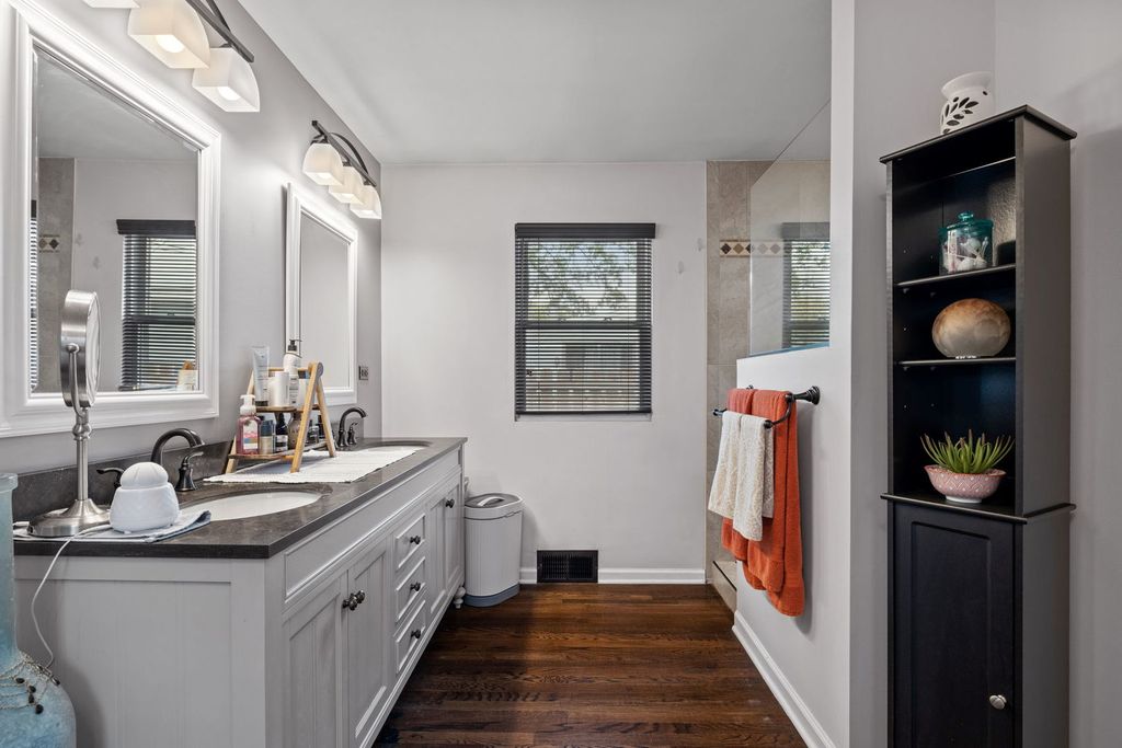 Absolutely adorable ! You will not believe how large this home is, once you are inside. It has such an open concept. Master Suite is an addition to the original home. It is very nicely updated, to include white 6 panel doors with black hardware and dark hardwood flooring throughout .There are 3 bedrooms and 2 full baths on the main floor, including the owners suite with an updated ensuite & walk in closet. The galley kitchen is filled with sunlight and has beautiful granite counters, ceramic tile backsplash, closet pantry and stainless steel appliances.There is plenty of room in the dining area to fit your table and chairs. The downstairs is partially finished and includes a full bath. There is a sectioned out room - plenty of space for a workout area or den AND office space or a guest room. The partially fenced backyard is just perfect for entertaining - nice sized patio/deck/gazebo - right outside your back door & still more than enough room for gardening. EV Chargers for cars stay! We can get it closed just in time for spring! 1 Year Home Warranty included at closing. Roof 2017.