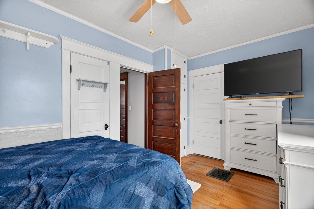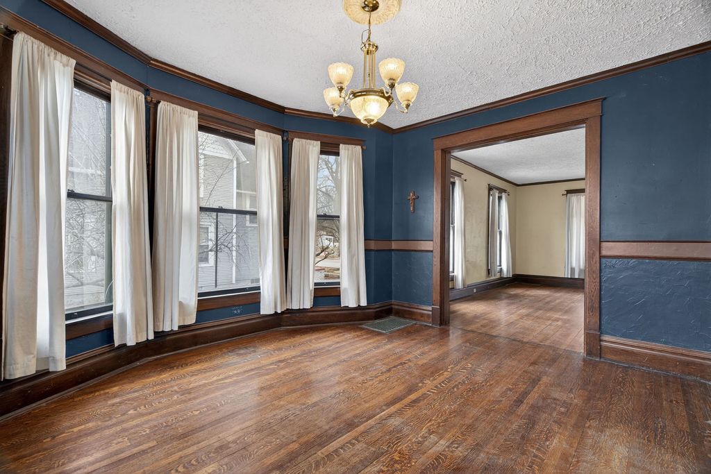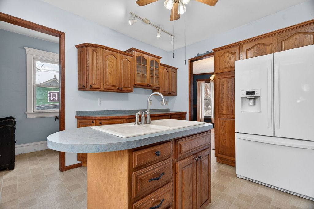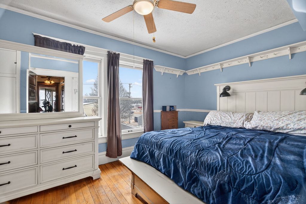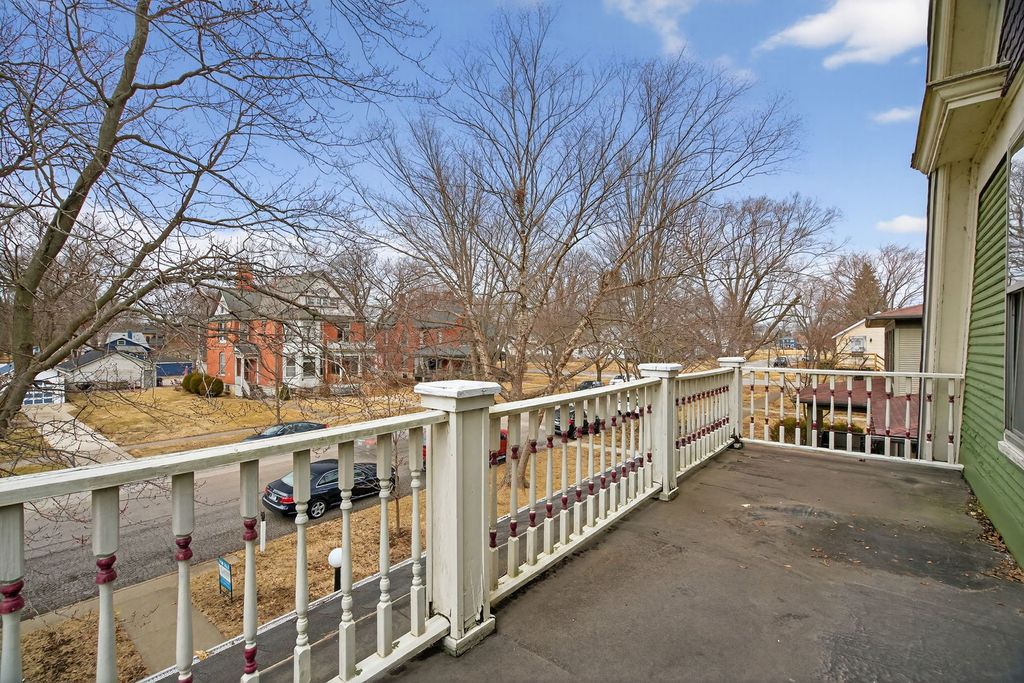 A stunning Painted Lady Victorian in the heart of town, where timeless character meets modern living. This home showcases gorgeous vintage details including ornate trim, high ceilings, and classic architectural charm, all thoughtfully paired with today's most desired comforts. The living room is filled with natural light and features the original fireplace complete with a beautiful iron cover, creating a warm and inviting focal point. The formal dining room is perfect for hosting holidays and special gatherings, while the wonderful heated sunroom addition offers year-round enjoyment. The kitchen includes a center island & plenty of custom cabinetry. The spacious primary bedroom opens to a private balcony perfect for that morning coffee. The second bedroom connects to an unfinished walk-up attic perfect for storage, a future bonus room, playroom, office, or whatever fits your needs. The partially finished basement includes a fourth bedroom and a cozy Franklin stove, adding extra living space and flexibility. Outside, you'll find an amazing two-car detached garage with walk-up stairs to a large loft area, ideal for a man cave, studio, workshop, or additional storage. Relax on the beautiful front porch, just waiting for an adorable swing and watching those beautiful sunsets. The large fenced-in backyard offers plenty of space for family gatherings, entertaining guests, or simply enjoying the outdoors. This home truly offers endless possibilities while preserving its historic charm. UPDATES: New Sump (2026) Sewer clean out pipe (2025), Garage door (2024), Fence (2023), Roof (2018), Gutter guards & Garbage Disposal (2023). Improvements & Highlight sheet under additional info. Call for your showing today & WELCOME HOME! Please note some photos are virtually staged to give you a better feel for the space!