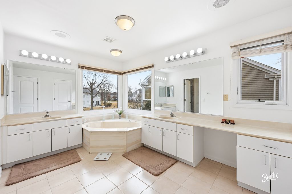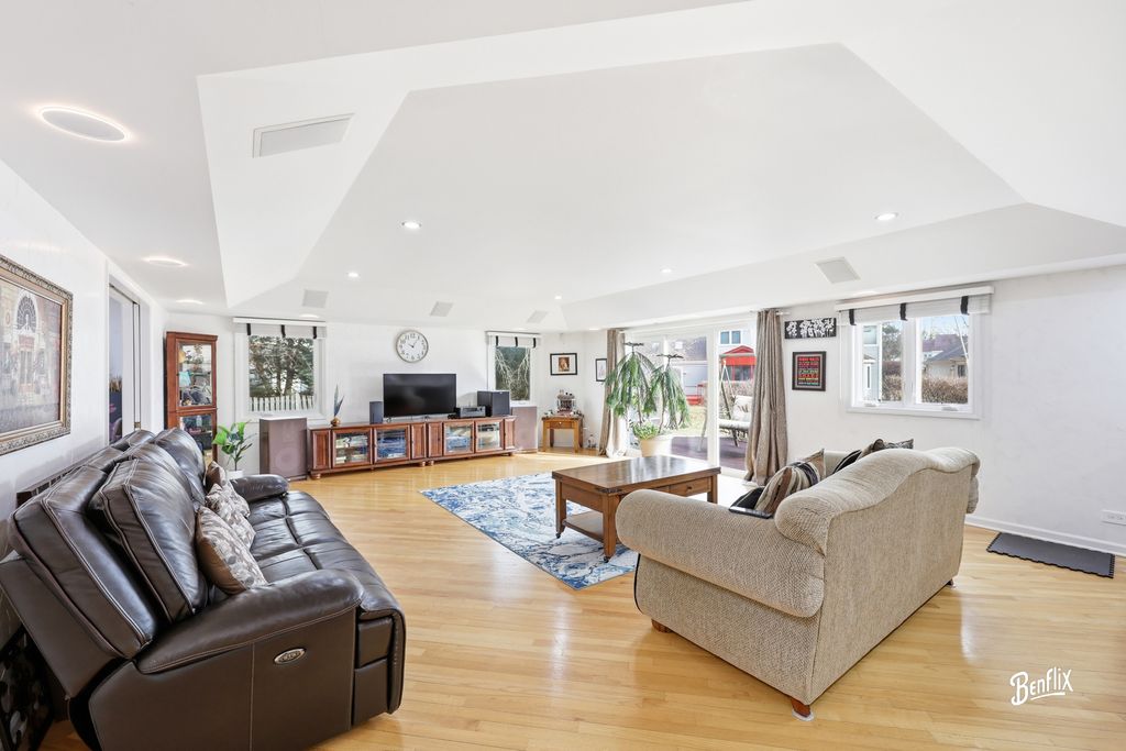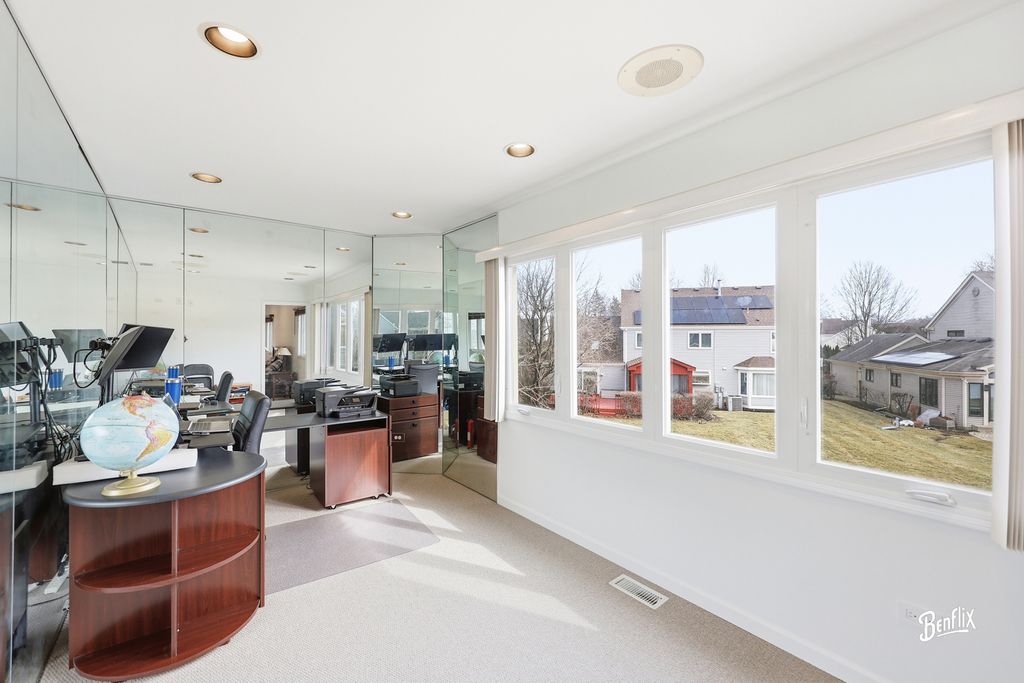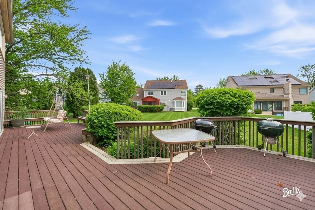 Welcome to This stunning 5-Bedroom 2.5 bath home! Located in the highly sought-after Woodlands of Fiore and within the award-winning Adlai E. Stevenson High School district, this stunning Expanded Cornelian model seamlessly blends elegance, functionality, and thoughtful modern upgrades. Featuring 5 spacious bedrooms, 2.5 baths, and a finished basement, this move-in ready home is designed for comfortable everyday living and effortless entertaining. Step through custom double doors into a dramatic two-story foyer that opens to a sun-drenched Living Room with skylights and a large picture window. The formal Dining Room, highlighted by a charming bay window, offers the perfect setting for gatherings and special occasions. The expansive Family Room features a granite-topped bar and sliding doors that lead to a huge newer deck overlooking the serene backyard - ideal for relaxing or hosting guests. The expanded white Kitchen boasts an island, skylit breakfast room, and an additional slider to a spacious patio, creating seamless indoor-outdoor living. A versatile sitting room or playroom and convenient garage access complete the main level. Upstairs, the luxurious Primary Suite serves as a private retreat, complete with an attached office/exercise/nursery room, spa-like bath with Jacuzzi tub, dual vanity, makeup table, and walk-in closets. Four additional generously sized bedrooms share a beautifully redesigned hall bath with double vanity and tub. The professionally finished basement provides exceptional space with dedicated entertainment and exercise areas - perfect for a home theater, gym, or game room. **Recent Upgrades & Special Features Include:** New Dishwasher (2026) * 10KW Solar Panel System (owned & fully paid off) * New attic fan & kitchen exhaust system (2025) * Whole-house water softener (2025) * New gutter guards (2025) * Choice Home Warranty valid through 2030 (fully transferable) * Fresh paint & new LED recessed lighting throughout * New electric outlets & switches * Roof & gutters (2023) * Water heater (2023) * Windows replaced (2021-2023) Situated in a quiet, picturesque neighborhood with convenient access to major highways, shopping, and dining, this home offers timeless charm paired with modern efficiency. Served by Ivy Hall Elementary School and Twin Groves Middle School, and located in one of the most desirable communities in Buffalo Grove, this exceptional property is truly a place to call home. ** Move in and start living your dream today!! **