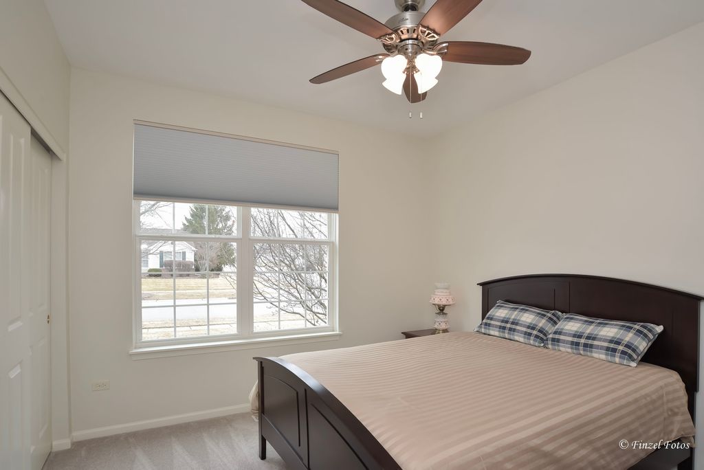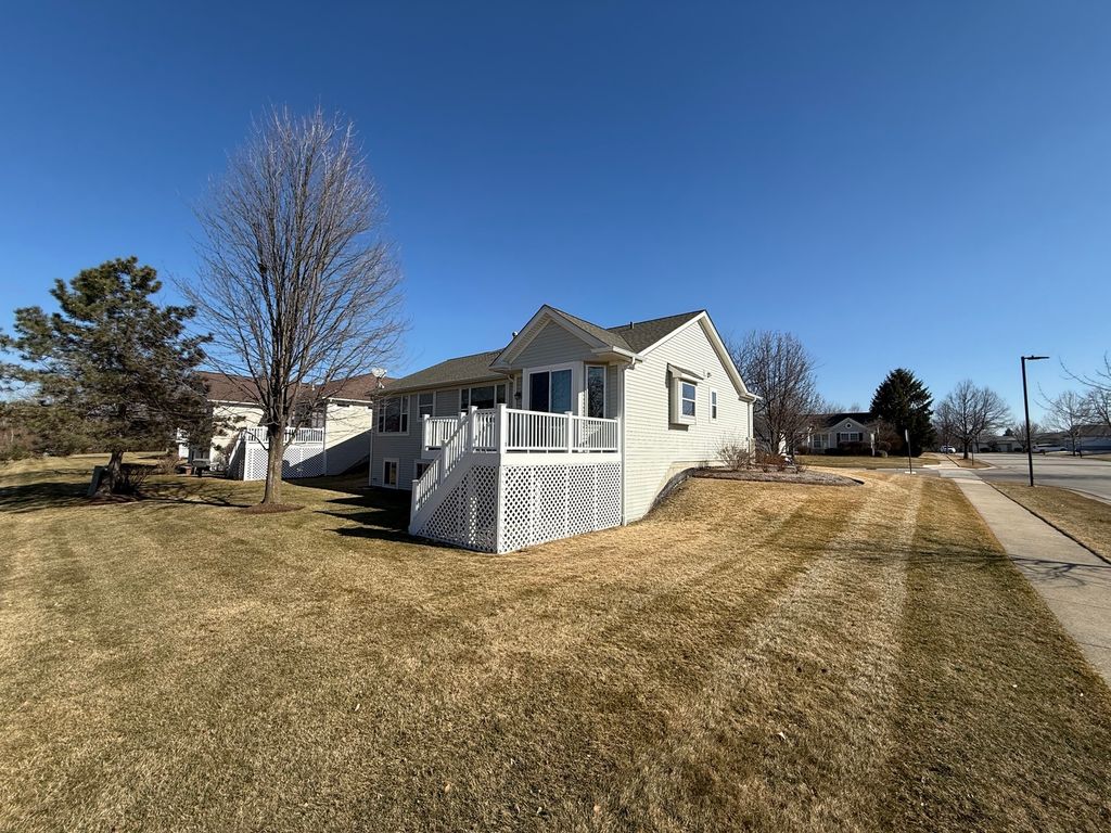 Beautifully maintained Mackinac model in the highly sought-after Del Webb Sun City Huntley active adult community, ideally positioned on a premium lot backing to wetlands with serene wildlife views, and no rear neighbors. This 2-bedroom, 2-bath home with den offers a spacious, open layout enhanced by numerous updates. The kitchen showcases engineered hardwood flooring, extended cabinetry with select glass-front accents, upgraded granite countertops, and exceptional storage. The adjoining eating area features sliding glass doors that open to a large maintenance-free Trex deck-perfect for relaxing while enjoying the tranquil natural setting. The primary suite includes an updated bath with additional storage cabinets, newer vanity, and a custom ceramic tile shower. Additional interior highlights include a bonus room off the laundry area, a partially finished English basement providing extra living or recreation space plus abundant storage, and a finished room above the garage with pull-down stairs for flexible storage or hobby use. Recent improvements include updated HVAC, fresh neutral paint and carpet, inground sprinkler system, gutter leaf guards, a refreshed front walkway with railing, and a garage floor finished with durable polyaspartic coating. Residents enjoy resort-style living with exceptional amenities, including three pools, bocce, pickleball and tennis courts, softball field, woodshop, two fitness centers, walking trails, fitness classes, on-site dining, a nature park with catch-and-release fishing pond, and an 18-hole golf course. Meticulously maintained and move-in ready-don't miss this opportunity.