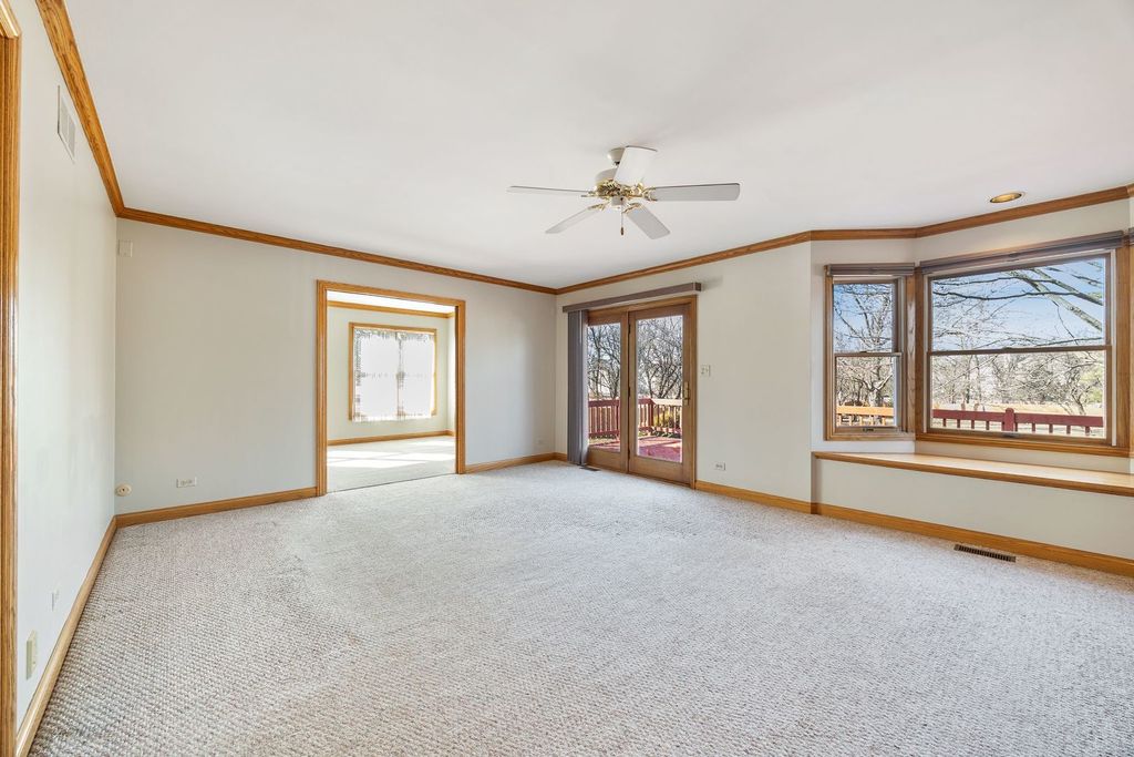 Welcome to 28W760 DuPage Street, a spacious custom-built home offering comfort, character, and an incredibly convenient location in unincorporated DuPage County just minutes from downtown West Chicago, downtown Winfield, the Metra train station, major highway access, and Northwestern Medicine Central DuPage Hospital. This single-owner home reflects the thoughtful design and craftsmanship that comes with true custom construction. Inside, the layout provides multiple living and gathering spaces. A large dining room offers the perfect setting for holidays, celebrations, and laughter-filled dinners. The inviting family room and separate living room, divided by elegant glass French doors, provide flexibility for entertaining, relaxing evenings, or simply enjoying quiet moments at home. The kitchen offers generous cabinet and quartz counter space along with a bright eat in area that overlooks the backyard. Throughout the home you will notice beautiful wood finishes and detailed crown molding that add warmth and timeless character. Upstairs features brand new carpet throughout and comfortable bedrooms designed for everyday living. The bathrooms and laundry room have been updated with quartz countertops, blending modern updates with the home's classic style. The finished basement expands the living space and offers endless possibilities for recreation, hobbies, or entertaining. It is already set up for a future wood-burning stove, plumbed for a wet bar, and includes a dedicated storage room originally designed as a wine cellar. The oversized two-car garage offers additional storage with built-in shelving, cabinets, and pull-down attic access. Above the garage, a large unfinished attic provides incredible potential for future expansion, including the possibility of creating a fourth bedroom if desired. Outside, a charming gazebo with mosquito netting creates a comfortable outdoor gathering space, perfect for summer evenings and backyard get-togethers. Two storage sheds are also included with the property. After many years filled with family memories, the current owners are ready for their next chapter. This home now offers a new family the opportunity to create their own stories within its walls while enjoying a location that keeps you close to everything the western suburbs have to offer.