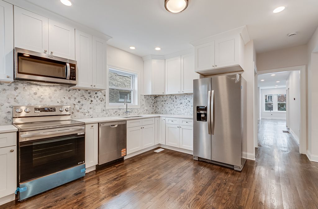 Take advantage of the early Spring season with this one-of-a-kind Brainerd home. 5 beds, 4 full baths, a finished basement, extra-large primary suite with walk-in closets, large dedicated laundry room with new washer and dryer, separate dining area, and custom cabinetry in the kitchen with all-new appliances. This fully reimagined rehab with full City of Chicago permits has a brand new roof, all-new windows, and two newer furnaces. The large living area features hardwood floors and original stained-glass windows preserved to reflect Chicago artistry and its rich history. A quartz-topped mantelpiece with an electric fireplace frames a TV accent wall, ready to receive your home entertainment system. There are two large rooms and a full bathroom on the main level, along with a custom kitchen that is both refined and functional - crisp quartz countertops, floor-to-ceiling custom cabinetry, and direct access to the rear deck for Sunday brunch or midnight wine chats. Extras include a pantry and an extra-large laundry room, with potential to expand the pantry space or convert it into a full-suite laundry with an ironing table and cabinets. Upstairs, is a spacious primary bedroom with a walk-in closet and a massive ensuite bathroom featuring double vanities and a beauty corner perfect for a makeup vanity dresser. Also on this level are two additional bedrooms with extra-large closets and ample windows, keeping the space bright and airy year-round. The open basement features a full bath, utility room, two large storage rooms, and a study space for your work-from-home needs. It's a layout that adapts to whatever you need - extended family, guests, recreation, or a private studio setup. Outdoors, enjoy the rare benefits of a raised deck, an enclosed side driveway for two vehicles, and a refreshed 2-car garage. You're just blocks from the revitalized Brainerd Park with its tennis courts, field house, and year-round programming. Commuters will love being close to both the Brainerd and 95th Metra stations. Everyday needs are easily met with nearby schools, grocery stores, and dining along Vincennes and Ashland. This isn't just a house - it's designed for the next chapter of your life. Schedule your showing today.