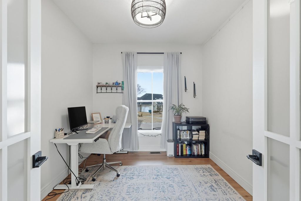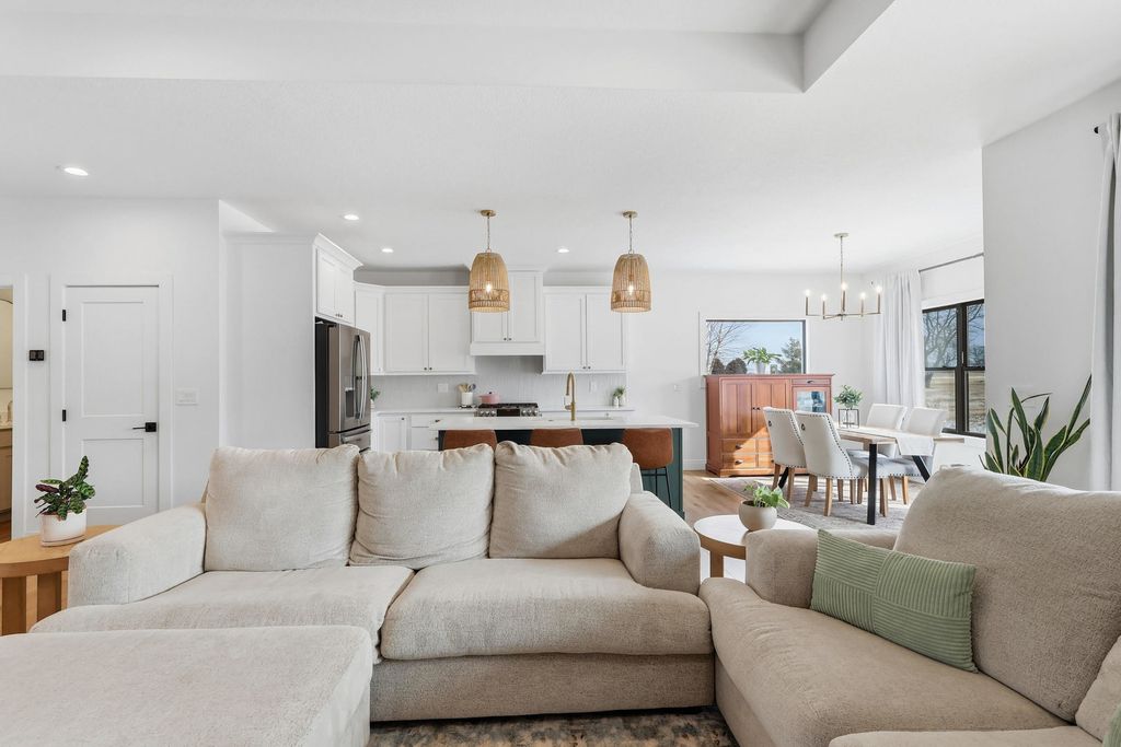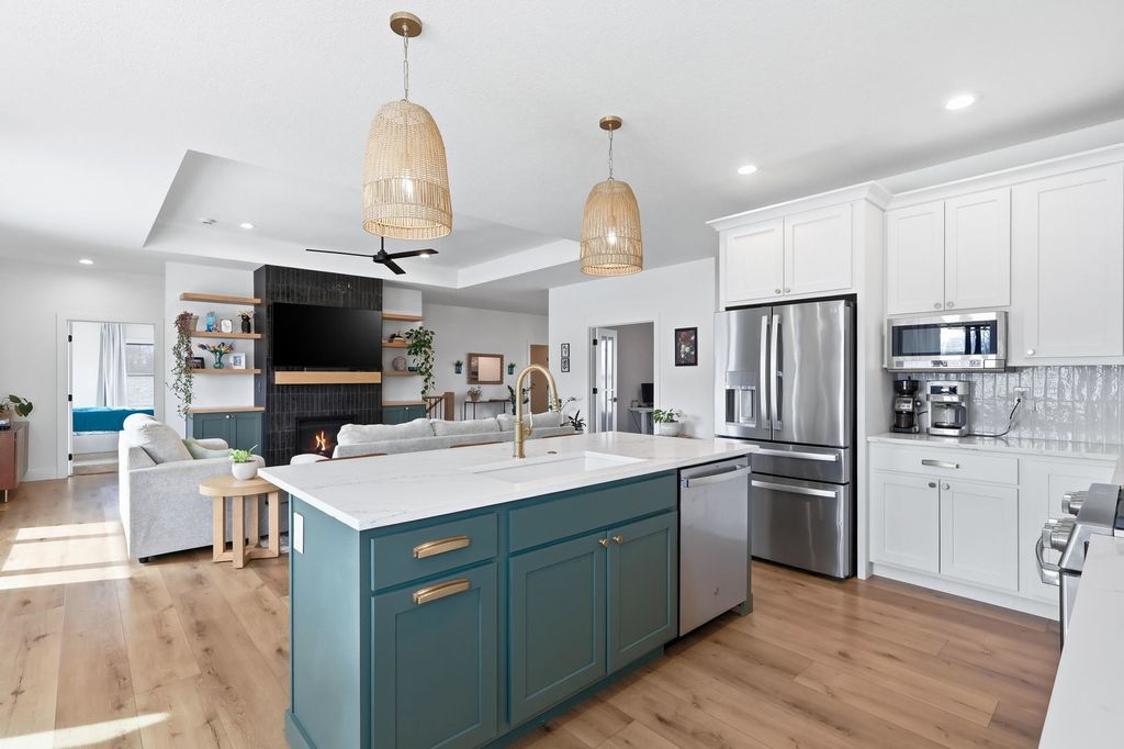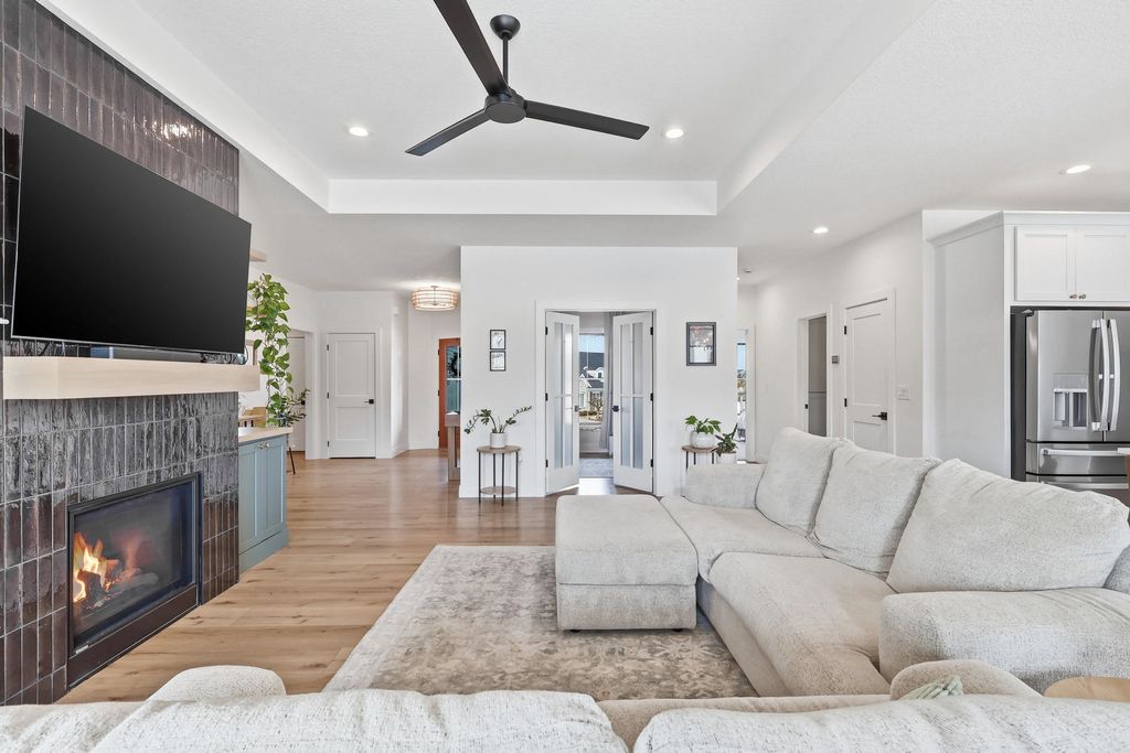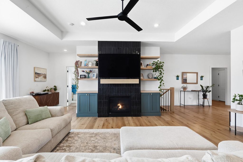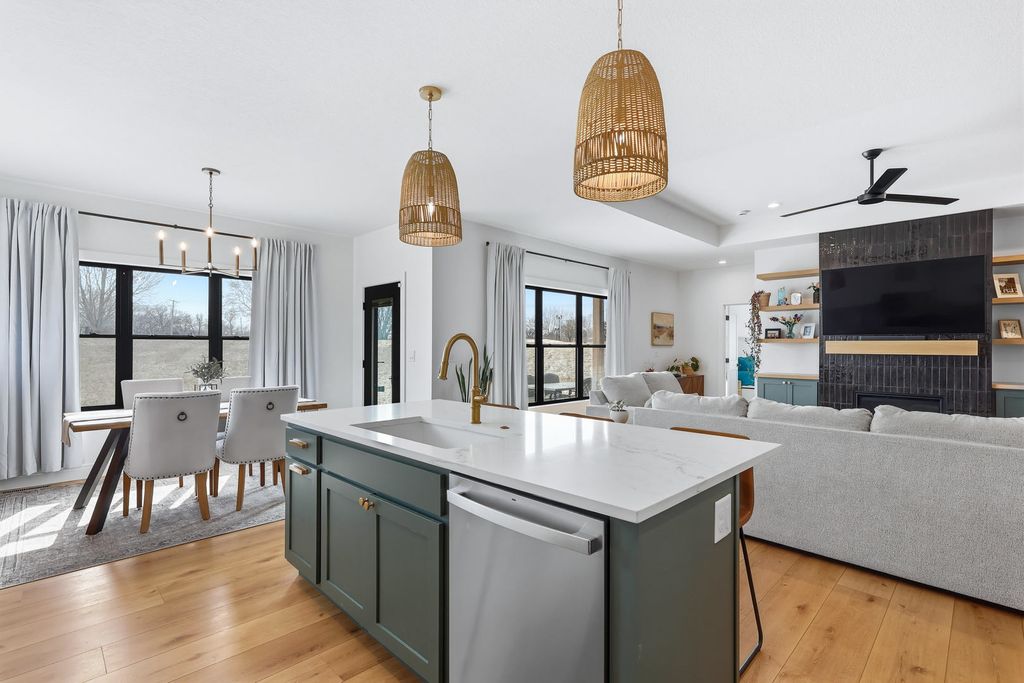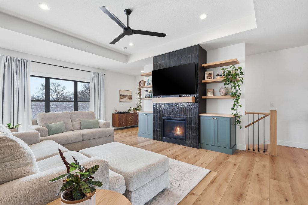 Experience modern, maintenance-free living in this stunning, nearly-new ranch home located in the desirable Pebble Creek North development. Designed with an open floor plan, this residence is bathed in natural light, creating a bright and welcoming atmosphere throughout. A striking focal point, the great room's central fireplace boasts floor-to-ceiling black tiles and is elegantly flanked by custom cabinetry and warm, natural wood floating shelves. This space flows seamlessly into a spacious kitchen featuring quartz countertops, high-end upgraded appliances, and luxury finishes-truly a chef's dream. The inviting primary suite serves as a true retreat, complete with an expansive walk-in closet and a beautiful bathroom featuring a large tiled shower. Practicality meets convenience with main-floor laundry and a massive 22x29 two-car garage, offering ample space for vehicles and all your essentials. You'll love the prime location and the exciting atmosphere of the neighborhood, with the Pebble Creek golf course opening this season! This move-in-ready home in the Pleasant Valley School District perfectly combines luxury, convenience, and an unbeatable location. Don't miss this MUST SEE-schedule your showing today!
