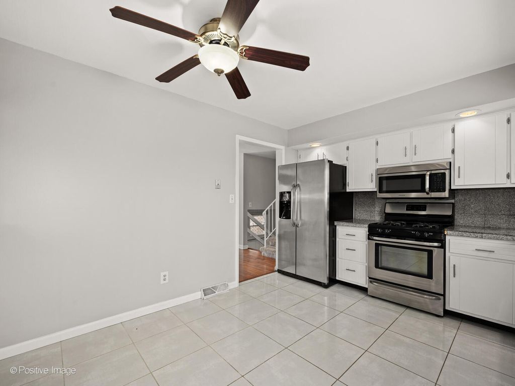 Welcome to this spacious and beautifully maintained 4-bedroom, 2.5-bath split-level home in Joliet offering generous living space, a functional layout, and a large fully fenced backyard. Step inside to a bright and inviting main level featuring hardwood floors throughout the living and dining rooms. The updated kitchen offers white cabinetry, granite countertops, stainless steel appliances, ample prep space, and a separate dining area with direct access to the backyard-ideal for everyday living and entertaining. Upstairs, you'll find three well-sized bedrooms, including a spacious primary suite with its own private half bath. The additional bedrooms offer generous closet space and share a full hall bathroom. The lower level features a large recreation room with a cozy brick fireplace, perfect for a second living area, home office, or game room. An additional fourth bedroom and convenient bath provide flexibility for guests or related living. The unfinished basement offers abundant storage and future finishing potential. Outside, enjoy a large backyard with patio space and mature trees-plenty of room for entertaining, pets, or play. The attached two-car garage and extended driveway provide ample parking. This home offers space, functionality, and value with room to make it your own. A wonderful opportunity to own a move-in ready home with room to grow.