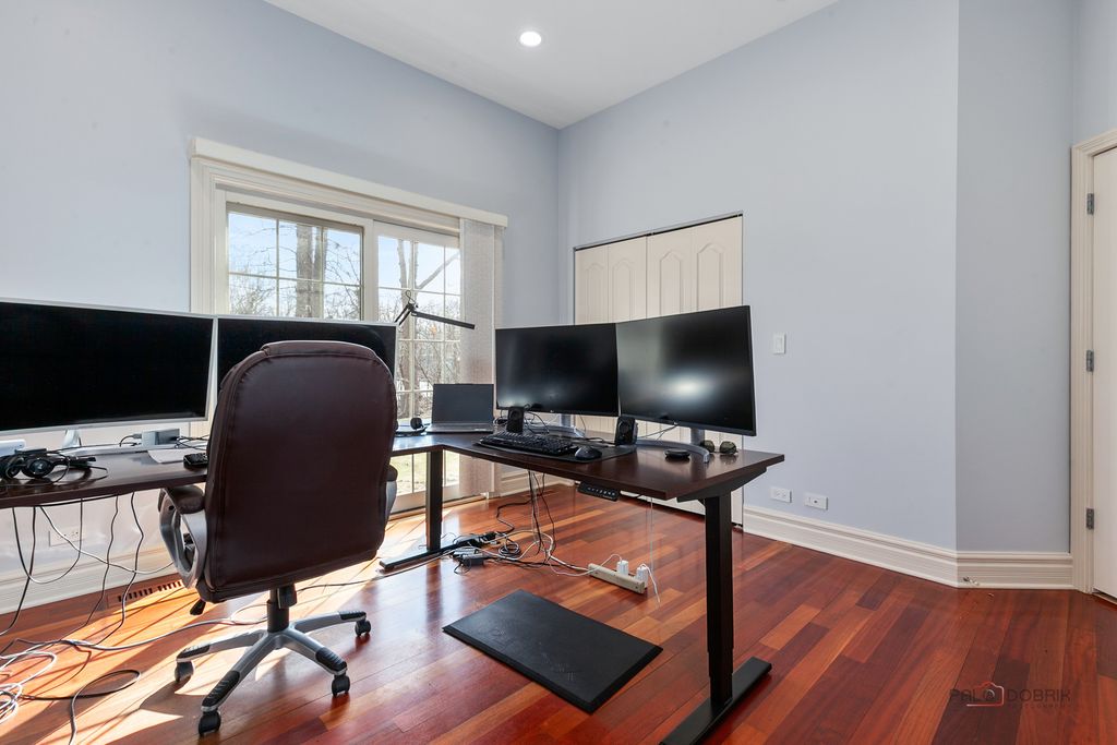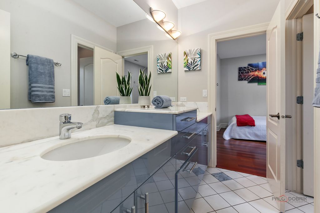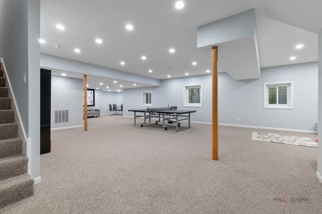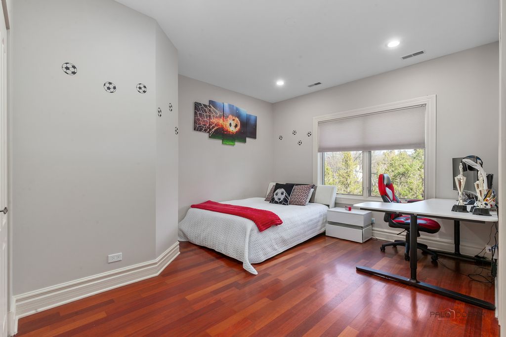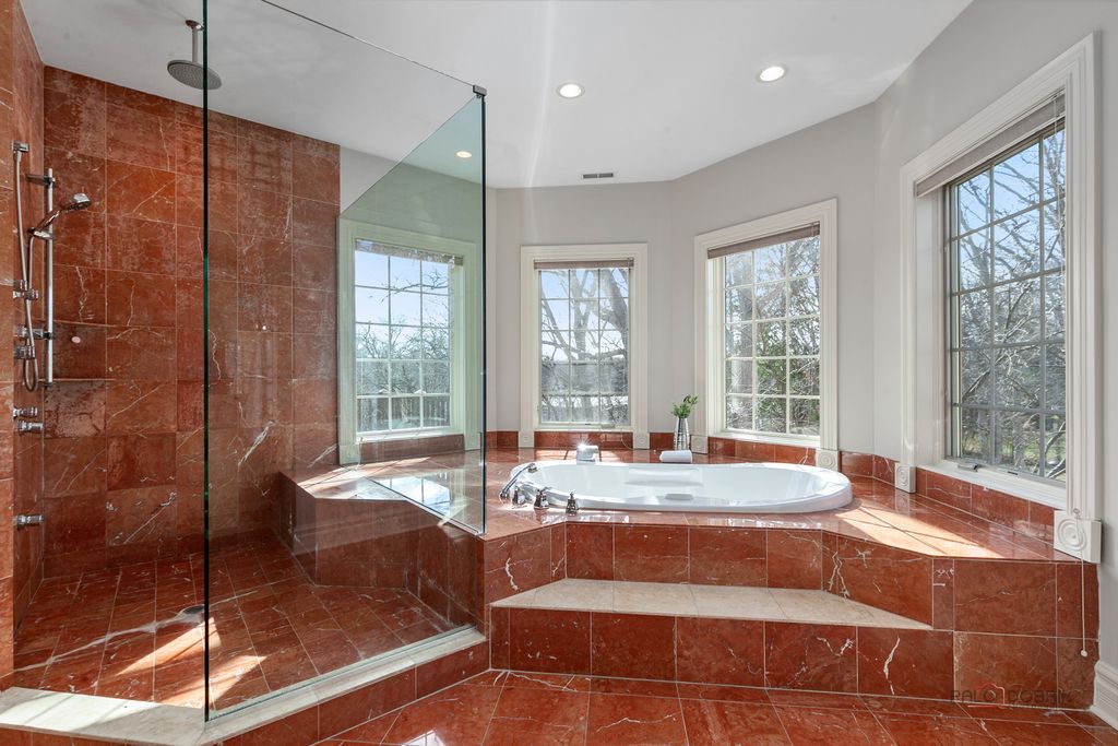 Welcome to this exceptional 6+1 bedroom, 6-bathroom corner-lot residence in prestigious Lincolnshire, proudly served by award-winning Adlai E. Stevenson High School and Laura B. Sprague School. A dramatic two-story foyer with a grand chandelier ceiling and elegant wrought-iron staircase creates a breathtaking first impression, complemented by full marble flooring throughout the main level. The thoughtfully designed layout offers both sophistication and comfort. To the right, the expansive great room seamlessly combines the living and dining areas-perfect for everyday living and effortless entertaining. The beautifully appointed kitchen features stainless steel appliances, granite countertops and backsplash, a spacious island with breakfast bar, and abundant cabinetry. The adjoining eating area opens directly to the screened-in porch, creating a seamless indoor-outdoor living experience. The impressive two-story family room showcases a stunning marble fireplace and additional access to the screened porch, framed by elegant white columns that enhance the architectural charm. A main-level bedroom with sliding glass doors to the backyard and a full bath provides flexibility for guests, in-laws, or a private home office. Upstairs, retreat to the luxurious primary suite offering three walk-in closets, a vaulted ceiling, and a spa-inspired ensuite with dual vanities, whirlpool tub, separate shower, and a private balcony with serene views. The second and fifth bedrooms each feature private en-suite baths, while the third and fourth bedrooms share a convenient Jack-and-Jill bathroom. A second-floor laundry room adds everyday convenience. The fully finished basement expands your living space with a seventh bedroom, full bath, and a large recreational area ready for endless possibilities-media room, fitness space, playroom, or more. This remarkable home blends elegance, space, and functionality in one of the area's most desirable communities-an exceptional opportunity to make your dream home a reality.