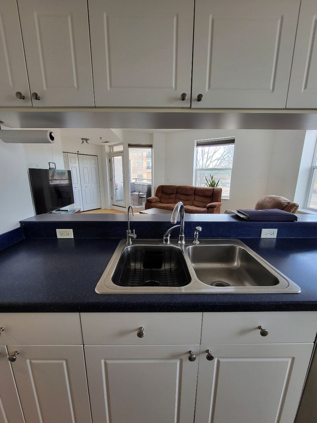 This is the Third largest condo in the building. Spacious first floor unit offers open New kitchen with table area and breakfast counter. New Refrigerator, stove, microwave and dishwasher. Corian counters. Overlooks large living room with fireplace, and plenty of windows for extra light. Master bedroom with tub and separate shower area and double bowl sink, walk-in closet with built-in cabinet and safe. Second bedroom with full closet and second full hall bath. Laundry room in unit with washer/dryer. Balcony and underground garage space. Laminated floors in living room and kitchen and hall way. Fireplace insert is newer. Underground garage space #47 and locker storage # A-10. Walk to train, Village Hall, and restaurants. Close to 294, I55 and 83.