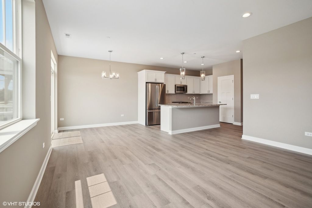 Welcome to The Townes at Mill Creek, where modern living meets convenience! This beautiful new construction home offers 2 bedrooms, a versatile loft, 2.5 baths, and a 2-car garage, all within the heart of Addison. Step inside to discover 1,699 square feet of sprawling open-concept living, highlighted by soaring 9' ceilings on the main level and vinyl plank flooring (per plan). The kitchen showcases sleek GE stainless steel appliances, gorgeous quartz countertops with a tiled backsplash, and beautifully crafted upper 36" cabinets with soft-close doors and drawers. Upstairs, the loft offers a space for work or relaxation, with an abundance of natural sunlight. The spacious primary bedroom boasts a tray ceiling, a large walk-in closet, and a beautiful en-suite bathroom with upgraded finishes and a double bowl vanity. This home is slated for May 2026 delivery. Please note that photos shown are of the same plan but do not represent the finishes for this specific home. With its prime location, this property ensures effortless access to major expressways, retail shopping destinations, and endless dining options along Lake St. This development is second to none. Set up a tour today!