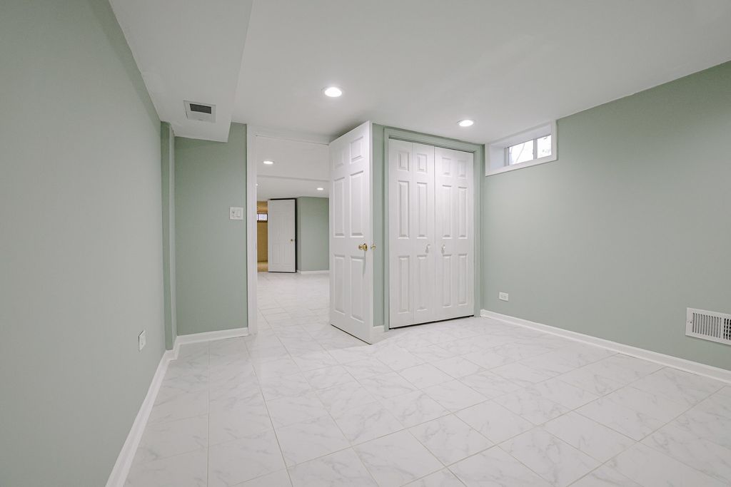 This impeccably maintained 3+2 bedroom, 2.5-bath ranch is situated on a desirable corner lot and offers a thoughtfully designed layout with a spacious living room and separate formal dining room. The home features thermopane windows, hardwood flooring throughout, and tastefully updated interiors with neutral decor. The recently renovated kitchen and bathrooms showcase modern finishes and quality craftsmanship. The fully finished walkout basement provides exceptional additional living space, including extra bedrooms, a full bath, a dedicated utility room, and a wet bar-ideal for entertaining or extended living arrangements. Significant updates include a new roof (2020), HVAC system (2019), upgraded sewer system, new kitchen stove and oven, stainless steel appliances, new entry door, and new gutters with leaf guards. Additional highlights include a whole-house fan, overhead sewers with flood control, a fenced yard, and a 2.5-car garage with convenient street-facing access for year-round ease. Perfectly located just two blocks from East Prairie Elementary School, with bus service to Niles North High School and close proximity to Old Orchard shopping and dining, this move-in-ready residence offers an outstanding combination of comfort, functionality, and prime location