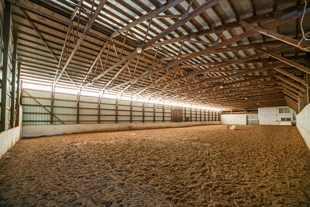 UNBELIEVABLE TURNKEY LUX WORKING EQUESTRIAN CENTER. Over 5300 sq. ft. of high quality elegant living space in the home. 800 sq. ft. guest cottage. Roughly 200 x 90 of working barn....160 x 60 of which is a beautiful indoor arena. All the horses enjoy 12 x 12 ft. stalls, roughly 25 of them. There are also six 14 x 12 separate stalls for overflow, isolation, or your own personal horses. All the equipment stays including the horse trailers, tractors etc. In the barn your manager and assistant manager have 2 separate apartments as well. The current manager has been there 35 years and his assistant manager has been there 10 years and will stay on if you need them. 5 acres of the 20.44 acres are in hay. All of it is in 3 board fencing. The home was built in 1989 and has a flexible floorplan with every room generously sized.. There are 2 master suites (one up and one down), the main floor Master has it's own living room. The office has a separate entrance an it's own powder room but is currently being used as a bedroom for a caretaker. There is not a bad view out of any window (which are Anderson's BTW). The roof on the house is barely 5 years old. Relax on the screened porch in the summer or the sun room in the winter and enjoy the serenity of the countryside. Peace & Quiet all around you.