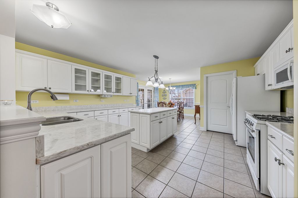 Welcome to this beautiful sprawling ranch in the desirable Westgate Manor Subdivision of Peotone-where comfort, space, and thoughtful updates come together in a wonderful in-town location. Just minutes from interstate access, top-rated schools, the Will County Fairgrounds, and numerous parks, this home offers both convenience and community. The classic exterior delivers timeless curb appeal and features a 3-car garage along with a nicely sized backyard complete with a paver patio-perfect for outdoor dining, relaxing evenings, or entertaining guests. Inside, the home has been meticulously maintained and offers a spacious, functional layout enhanced by volume ceilings, abundant natural light, crisp white doors, upgraded trim, and custom moldings. The spacious living room showcases gleaming hardwood floors and flows seamlessly into the large kitchen, which features custom white cabinetry, quartz countertops, and a dinette area for everyday dining. The main level also includes a private office ideal for remote work or study, a bright 3-season room that extends your living space, three generously sized bedrooms, and two full bathrooms. The finished basement expands your living options with a large family room, powder room, additional sitting area, and a spacious workroom-perfect for hobbies, storage, or future customization. This well-cared-for ranch combines space, style, and location, ready for you to move in and make it your own.