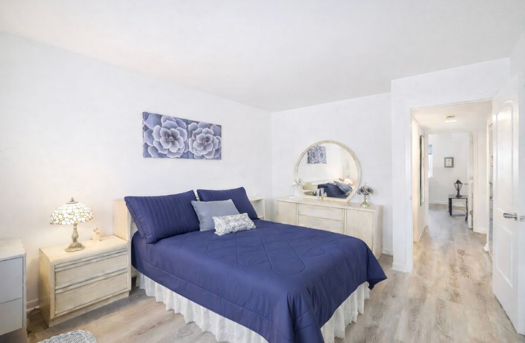 Move-in corner 2 bd 1 ba lakefront condo in the desirable Bay Colony community. This well-maintained unit features brand new flooring throughout, tasteful finishes and an updated kitchen with a new dishwasher, recently replaced microwave and ample cabinet space. The layout includes a separate dining area and offers generously sized rooms with an abundance of natural light. Conveniently located near shopping, dining and local amenities with access to elaborate community features including a resort-style swimming pool, hot tub, sauna, tennis/pickle ball courts, basketball courts, playground and a scenic lake with a fountain spray and seasonal swans.