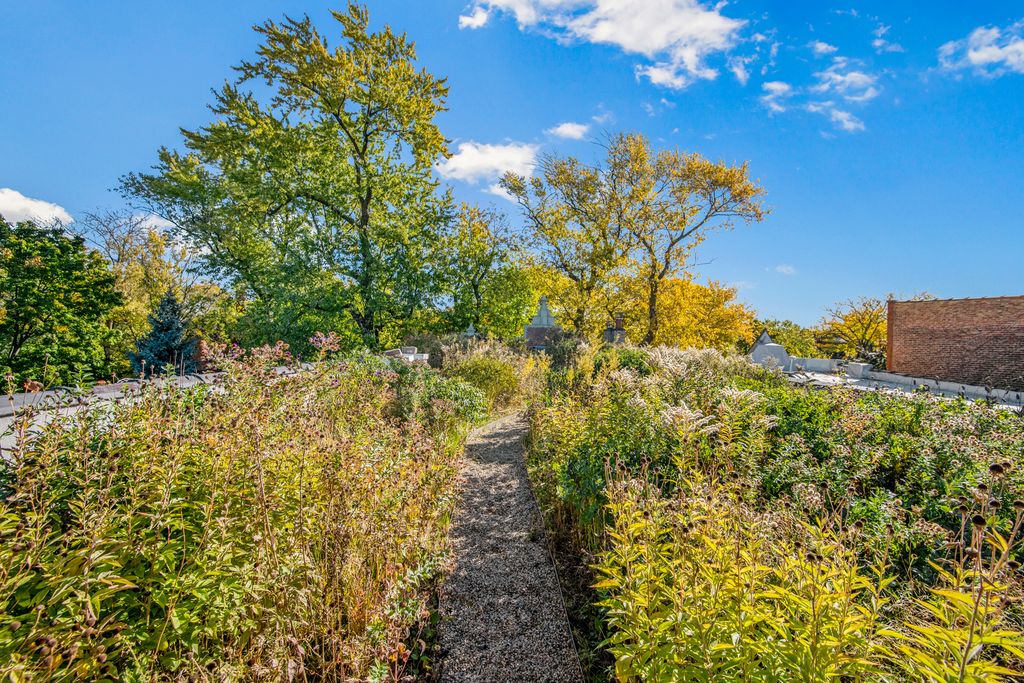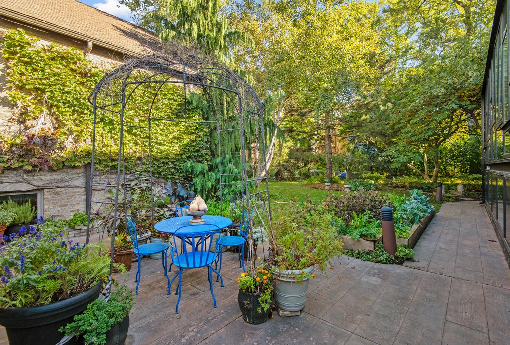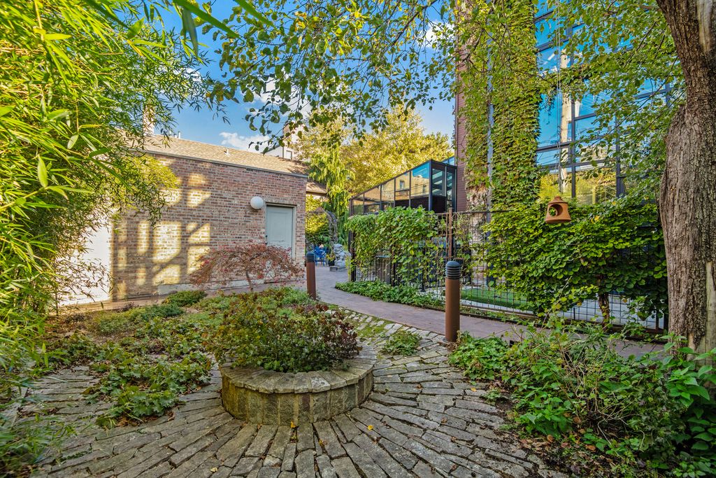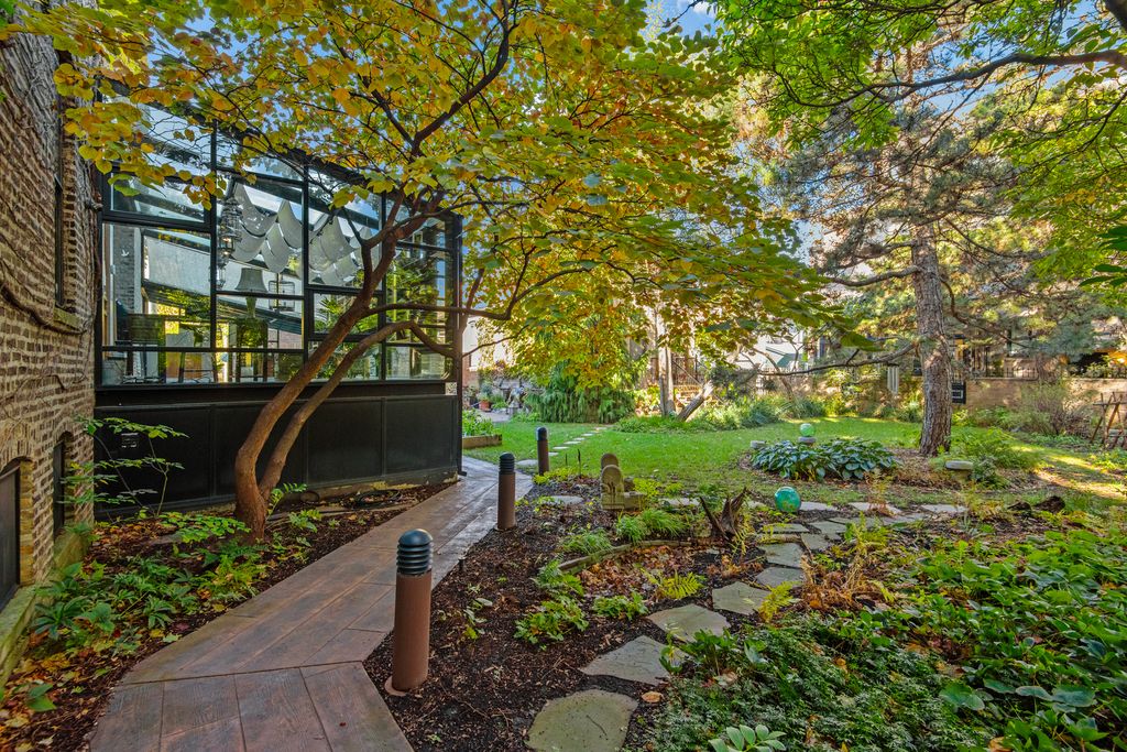 Once in a lifetime opportunity to own a true urban oasis with majestic renovated greystone on 104'x126' vast city compound with charming coach house overlooking picturesque garden in the desirable Bucktown neighborhood. This breathtaking dwelling was meticulously restored to celebrate the original fretwork, cove moldings, oval leaded glass windows, ceiling medallions, oak fireplaces w/antique mantels, original tiles, & oak mirror in entryway. The modern steel & glass additions of jaw dropping solarium off side of home, the glass rear staircase (fabricated by company that made the famous "Bean" in Millennium Park), & sleek chef's kitchen are a masterclass in juxtaposition to intricate original details showcasing the history of this 1896 abode which was brought into the 21st century. Greeted by a stately exterior w/relief carvings & gas lamps, a gracious foyer welcomes you into sunny double parlor living room w/original pocket doors separating formal dining room which boasts a double sided original hutch w/curved beveled glass & custom chandelier by artist Lucy Slivinski made from a tree on property. Legitimate chef's kitchen w/commercial grade appliances, unique natural stone countertops, pizza oven, room for large table, & fresh produce from the property's variety of fruit trees, vegetable garden, & delicious honey from the bee hives on rare urban rooftop garden. The heart of the home is the extraordinary glass atrium solarium off of the kitchen which transports you from an urban environment to being immersed in nature with indoor koi pond and remarkable backdrop of blooming scenic landscaping. The staircase up to 2nd level features wood paneled art gallery to hang your favorites with picture molding. Original fretwork meticulously restored and repositioned on this level to find awe-inspiring 19th century craftsmanship at every turn. Beautiful 2nd floor family room with original display shelving cabinet to anchor the room. Large primary suite boasts pendants which are works of art made from silk chrysalises, large sitting room with curved glass windows and original fireplace, custom-built-ins, large walk-in closet with custom built oval jewelry cabinet, & zen inspired bathroom w/stunning natural stone oversized shower, & antique fixtures such as Chinese soaking tub, vanity, pendants & door for a tranquil spa-like experience. Two-more bedrooms w/shared en-suite bathroom complete the 2nd level. The lower level features radiant heated flooring, 2 additional bedrooms, full bathroom w/steam shower, laundry, dog wash station, & abundant storage. Extra 2BR/2BA apartment on basement level w/its own entrance & kitchen w/high end Sub Zero, Wolf, & Miele appliances ideal for au-pair or in-law suite. The home is equipped w/elevator which goes all the way to rooftop level (this renders the house fully wheelchair accessible) for special walk through a "garden in the sky" professionally landscaped by Intrinsic landscaping w/drip irrigation system w/native perennials & bee hives producing the most delicious diverse honey. The rear of the home has a doggie door leading to smaller fenced in dog yard, firepit, large patio w/amazing Zanzibar door as backdrop on the 2.5 car garage. Parking pad on side of charming 1874 coach house known to house celebrities filming here. This beloved coach house was picked up from behind house next door and moved to its current location with vast front yard and features original pine floors, wood burning fireplace, updated kitchen with Carrera Marble countertops, 2 bedrooms, 2 renovated bathrooms, & lower level family room with another Zanzibar door. The magical yard is filled w/intoxicating blooms from Magnolia trees, and includes apple trees, peach trees, raspberries, gooseberries, & blackberries all w/irrigation system. Located in historic district of Bucktown w/easy access to blue line, 606 Trail, dog park, and all of the best boutiques and restaurants in heart of Wicker Park and Bucktown.
