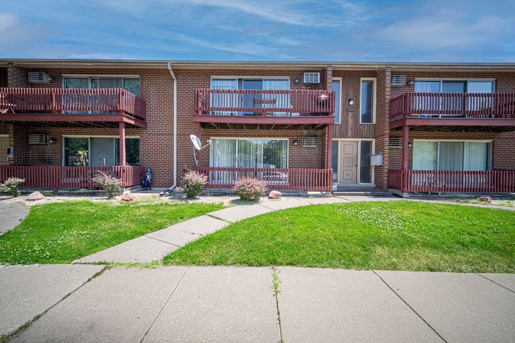 Welcome home to this beautifully maintained 2 bedroom, 1 bathroom first-floor condo offering comfort, convenience, and security. The building features a locked main entrance, providing added peace of mind. Step inside to a spacious living room filled with natural light, creating a warm and inviting atmosphere. Sliding glass doors lead to your private front balcony, perfect for morning coffee or relaxing evenings. The kitchen is equipped with granite countertops and stainless steel appliances, offering both style and functionality for everyday living and entertaining. Additional highlights include new roof (2023), laundry and dedicated storage space in the basement, 2 parking spaces (1 assigned) and water, sewer, and gas all included in the monthly HOA fee. Located just minutes from the area's new casino, popular restaurants, shopping, and major expressways, this home combines convenience with low-maintenance living. Whether you're a first-time buyer or downsizing this condo checks all the boxes!