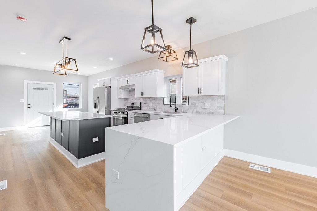Welcome to 7505 S Wolcott Ave, a stunning full renovation that perfectly blends modern luxury with thoughtful design in the heart of Chicago's South Side. This expansive residence offers 5 spacious bedrooms and 4 full bathrooms, delivering the ideal layout for both comfortable living and elegant entertaining. Step inside to discover a bright, open interior featuring two custom fireplaces that create warm, inviting focal points throughout the home. The gourmet eat-in kitchen is designed to impress, offering ample space for gatherings and everyday living, with convenient access to an enclosed back porch-perfect for morning coffee, additional entertaining space, or year-round enjoyment. The primary suite is a true private retreat, complete with a generous walk-in closet and a spa-inspired bathroom featuring a large walk-in shower, separate soaking tub, and a private balcony that provides a peaceful escape. The fully finished basement expands your living space and offers endless possibilities for a recreation room, guest suite, home office, or fitness area. Outside, enjoy a fenced yard - ideal for relaxing or entertaining, along with a two-car garage for added convenience. This home has been renovated from top to bottom with brand-new plumbing, electrical, and mechanical systems, plus dual heating and cooling for maximum comfort and energy efficiency. Luxury, space, and quality craftsmanship come together in this exceptional South Side home. **Schedule your private showing today-this one will not last.