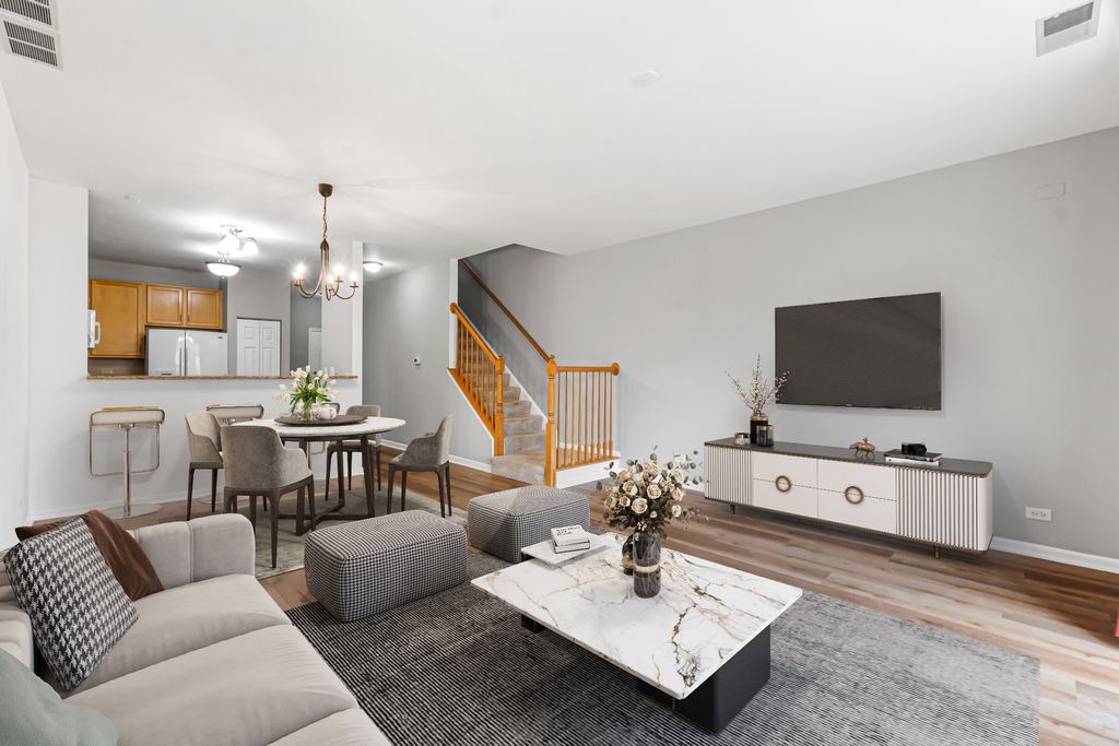 Move in ready multi level living townhome in PRIME Naperville location/schools. Freshly painted, new LVP flooring and refreshed bathrooms. Open layout ideal for entertaining with a powder bath on the main level. Sliding doors lead to your private patio, perfect for relaxing or entertaining. Finished lower level perfect for family room/rec room pace. Huge storage space with built in shelving that can, easily, be finished for an additional bedroom. The spacious primary suite offers a full private bath with built in vanity. Enjoy the convenience of second-floor laundry. Enjoy a prime location just steps from the Metra BNSF Route 59 train station and scenic Country Lake Park, plus quick access to Route 59's popular dining, shopping, and entertainment. Also a few minute drive to the highly revered downtown Naperville.