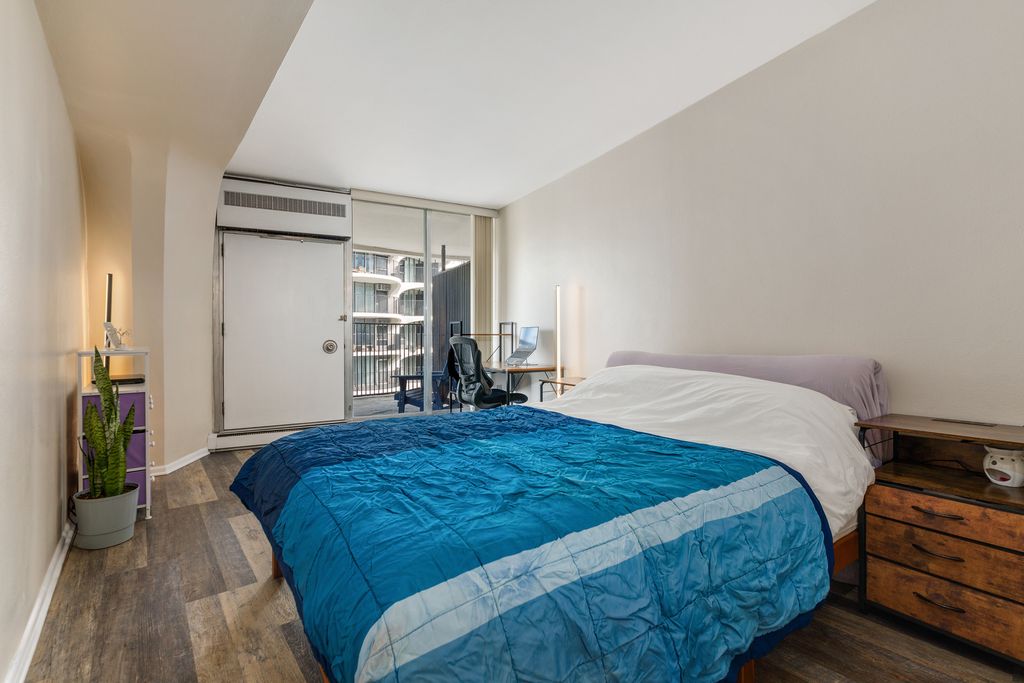 Sunny, northeast facing one bedroom one bathroom at Marina Towers. Enjoy beautiful views of the Chicago River and Lake Michigan from two large balconies. Modern concept kitchen, living, and bedroom with an eye for maximizing light and river views. Easy to maintain flooring throughout. Wonderful neighborhood grocery/convenience store in the lobby of the building. Great location with easy access to transportation, Red, Blue, Orange, Green, Pink & Brown lines just two blocks away. Lake Michigan, State Street shopping, the Magnificent Mile, restaurants, the House of Blues, the River Walk and more. Assessments include cable TV and internet, 24 hour doorperson & security, fitness room and package room. Parking available. Tenant occupied through June.