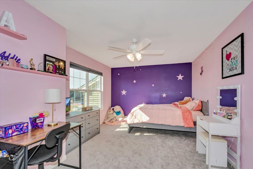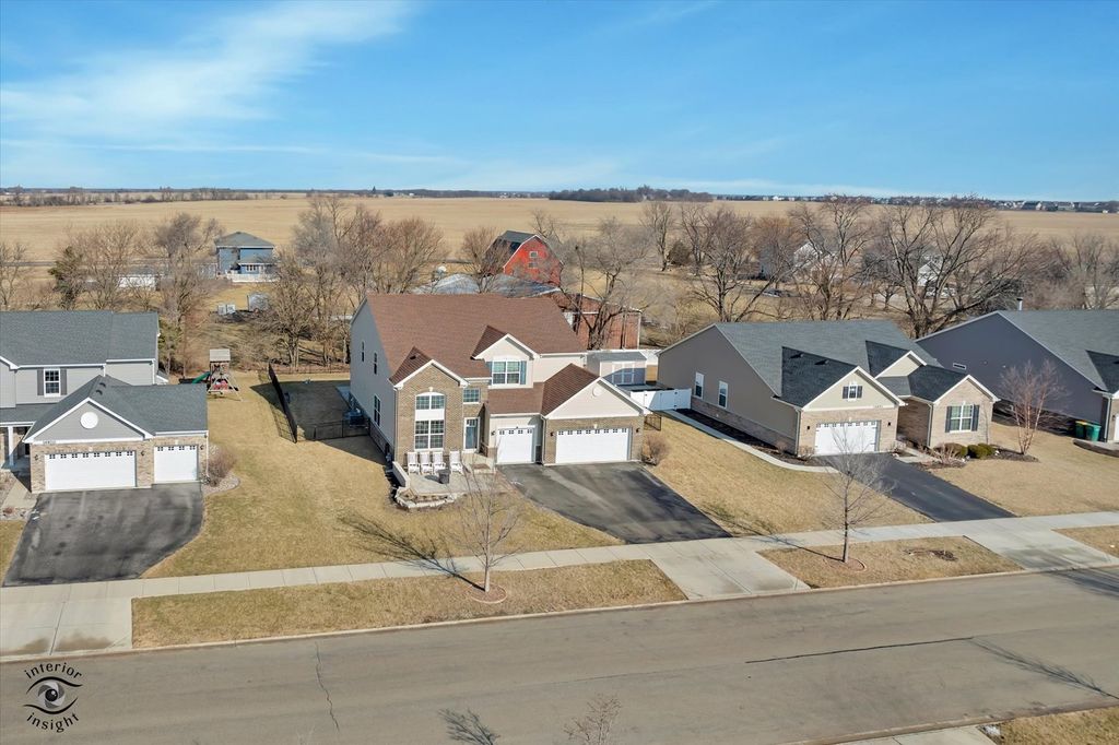 Welcome to this beautifully maintained 5 bedroom, 3.1 bath, 3 car garage, 3,263 SQFT Raleigh model home built in 2019, located in the highly sought-after Manhattan school district. What was meant to be the sellers' forever home is now available due to a job relocation. As you walk up, a charming BRICK PAVER FRONT PATIO (2024) creates a welcoming outdoor sitting area and great curb appeal. Inside, you are greeted by a bright living room with VAULTED CEILINGS that flows seamlessly into the formal dining room. Straight ahead, the updated kitchen features stainless steel appliances, QUARTZ countertops, oversized cabinetry, pantry, can lighting, a large ISLAND, and a REVERSE OSMOSIS system with Culligan H2O purifier connected to both the sink and refrigerator (2024). The spacious EAT-IN area offers plenty of room for dining and provides direct access to the backyard. The kitchen opens to the family room with a GAS FIREPLACE, creating a functional open-concept layout ideal for everyday living and entertaining. The main level features 9 FT CEILINGS throughout and also includes a separate OFFICE that can easily function as a playroom or additional flex space. The laundry room is conveniently located on the main level with NEW WASHER AND DRYER (2025). The three-car garage is INSULATED and DRYWALLED (2021) and includes a TESLA CHARGER. Upstairs you will find 4 spacious bedrooms . The primary suite features TRAY CEILINGS, TWO WALK-IN closets, and an updated bathroom. One of the secondary bedrooms also includes its own walk-in closet. The staircase is accented with ROD IRON railings, adding a nice architectural detail. The FINISHED BASEMENT (2022) includes a BEDROOM, FULL BATHROOM, and open flex space, currently used by the sellers as an IN-LAW SUITE. The fully FENCED in yard features a large PATIO, GAS LINE for the grill, and a NEW SWING SET (2025). Updates include: fence (Spring 2022), basement finish with in-law suite and full bath (Spring 2022), garage insulated and drywalled (Dec 2021), front brick patio (Spring 2024), Culligan H2O purification system for sink and refrigerator (2024), playset (2025), powder room vanity (Fall 2025), office built-in desk (2022), dishwasher (2025), washer and dryer (2025), and a grill gas hardline. This home offers modern construction, tons of space, thoughtful updates, and a highly functional layout in a location known for excellent schools and strong community appeal. Seller requests possession through June 8.