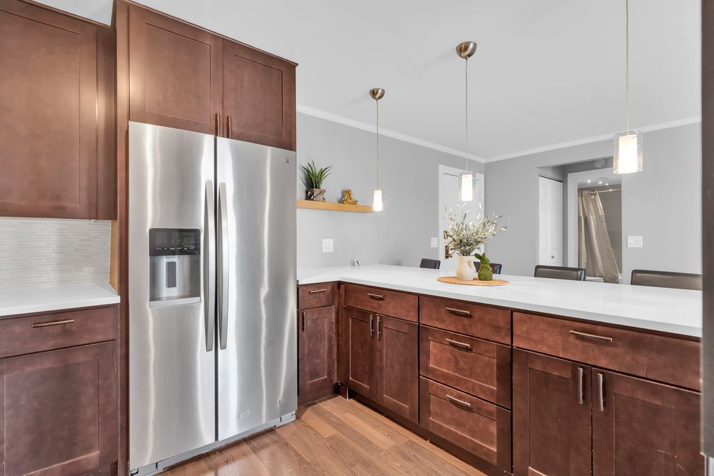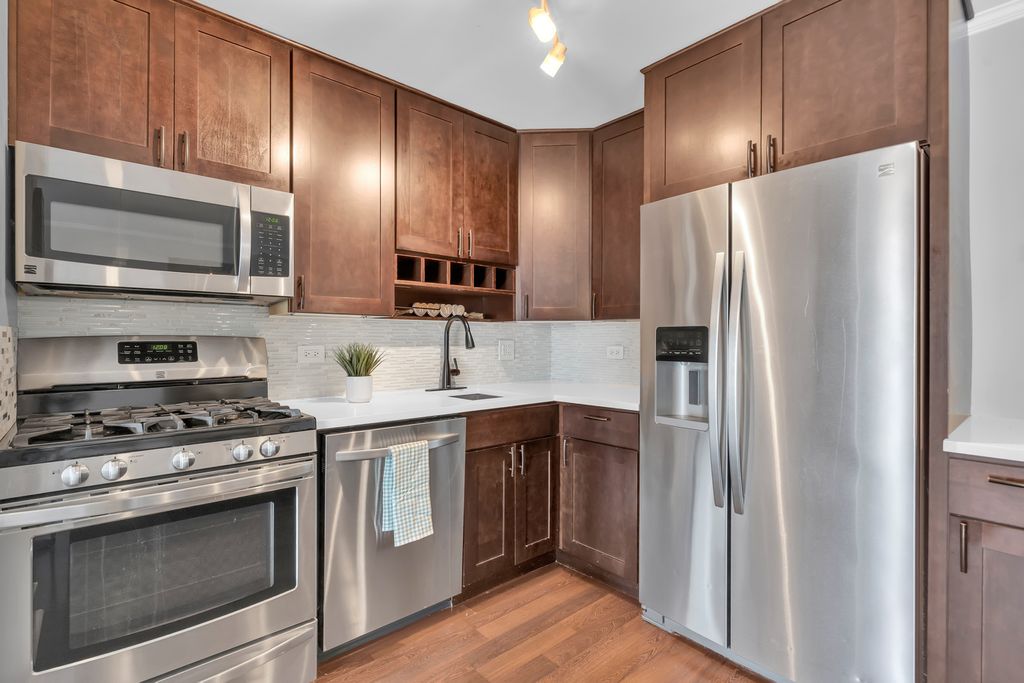 Welcome to Country Lane Park. Most desirable top floor unit. Building equipped with an elevator. Completely remodeled few years ago. The specious and open living room, overlooks contemporary kitchen and leads to large balcony with sliding door. Cherrywood kitchen cabinets with granite countertop, SS appliances, and garbage disposal. Newer flooring throughout the entire unit. Furnace and A/C unit only 3 years old. Amenities include laundry, a pool, tennis courts, party room, bike room, and a park. Plenty of guest parking and assign parking spots. Rentals allowed, pets allowed. Conveniently located near Metra, Expressway, shopping, and award winning schools. Multiple offers received , Highest and best 02/26/26 5 pm