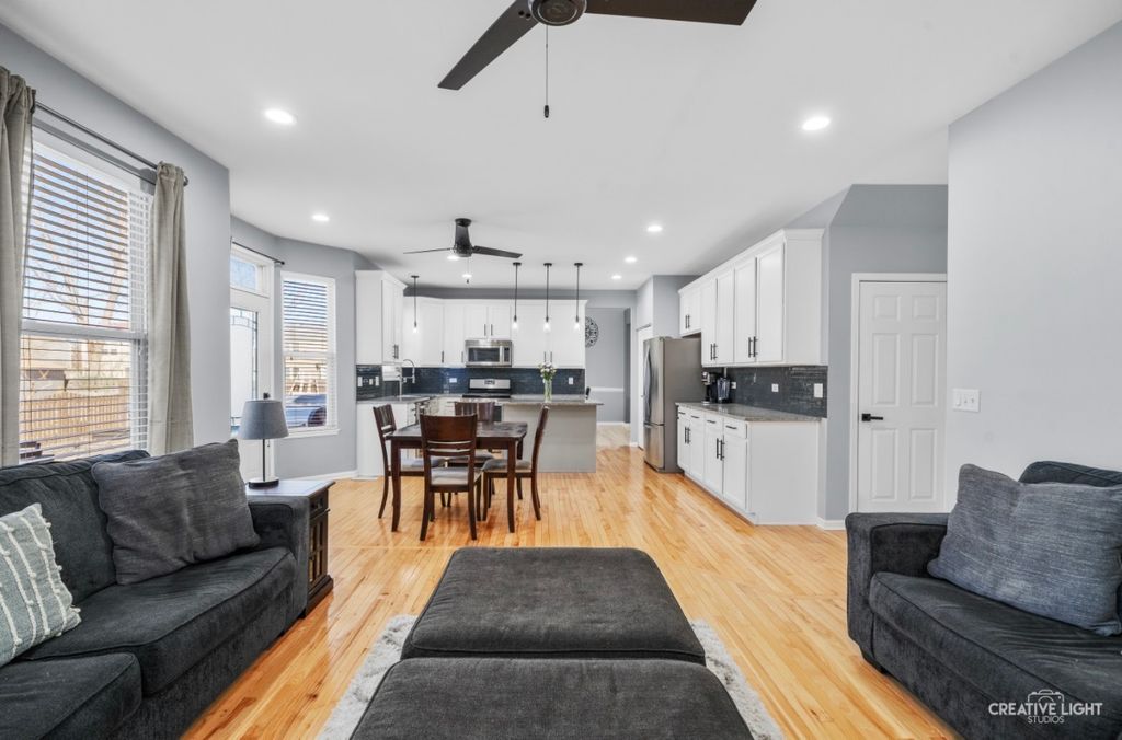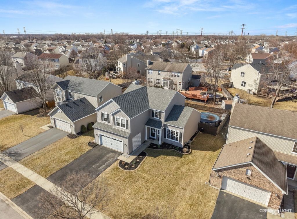 GORGEOUS * UPDATED * MOVE-IN READY Welcome to this stunning, light-filled home offering a beautifully updated open floor plan with 4 spacious bedrooms, 2.1 bathrooms, and a versatile loft-perfect for today's modern lifestyle. Located in highly sought-after Plainfield School District and served by Plainfield Central High School, this home also offers a convenient short drive to I-55, making commuting a breeze. From the moment you arrive, you'll notice the exceptional curb appeal with a newer roof and siding (just 2 years old), professionally landscaped yard, and a newer driveway. Inside, the home shines with hardwood flooring throughout the main level (installed just 1 year ago), fresh modern lighting, and a bright, open flow ideal for entertaining and everyday living. The remodeled kitchen is a showstopper-featuring granite countertops, white cabinetry with crown molding, glass tile backsplash, and upgraded lighting both above and below the cabinets for a warm, elegant glow. The cozy family room is enhanced with custom built-in shelving and storage flanking the fireplace, creating both style and function. Upstairs, you'll find generously sized bedrooms, including a beautifully remodeled primary suite with a brand-new luxury bath, along with an updated second full bath. Additional updates include new ceiling fans throughout and a refreshed laundry room for added convenience. The finished basement (approx. 1,000+ sq ft) offers incredible bonus living space-perfect for entertaining and recreation-with a dry bar, beverage fridge, and included fun features such as foosball, junior pool table, and air hockey. (Fully permitted with city.) Step outside to your private backyard retreat featuring a brick paver patio extension with 220V hookup for a future hot tub, a sunken above-ground pool, and plenty of space to relax or entertain. Car enthusiasts and hobbyists will LOVE the insulated garage complete with heater and exhaust fan for year-round climate control, plus a newer garage door and opener. Additional major updates include newer AC (approx. 5 years), updated exterior door with decorative glass, upgraded study doors, and more. This home truly offers the perfect blend of style, space, updates, and lifestyle amenities in a prime location with top-rated schools and easy commuter access. This is the one you've been waiting for.