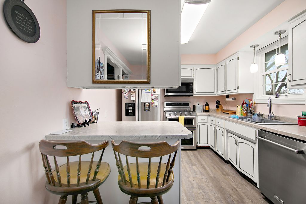 MOVE IN READY! This well maintained home features updated flooring throughout the main living spaces and a nicely refreshed kitchen with stainless steel appliances included. Take a look at the quality details such as Andersen windows and classic 6 panel doors adding a clean, timeless feel throughout the home. {Mechanical updates include: newer furnace, newer central A/C, and an on demand water heater} The crawl space has been properly maintained with insulation, vapor barrier plastic, and a sump pump system. Outside, the property offers NEARLY HALF AN ACRE, enclosed by a vinyl privacy fence with a large storage shed. A generous 30X12 deck overlooks the yard, while a newly asphalted driveway leads to the HEATED garage. Conveniently located near schools and parks, this property blends interior updates with outdoor space and everyday functionality.