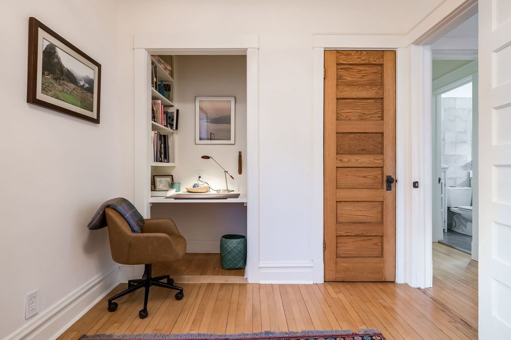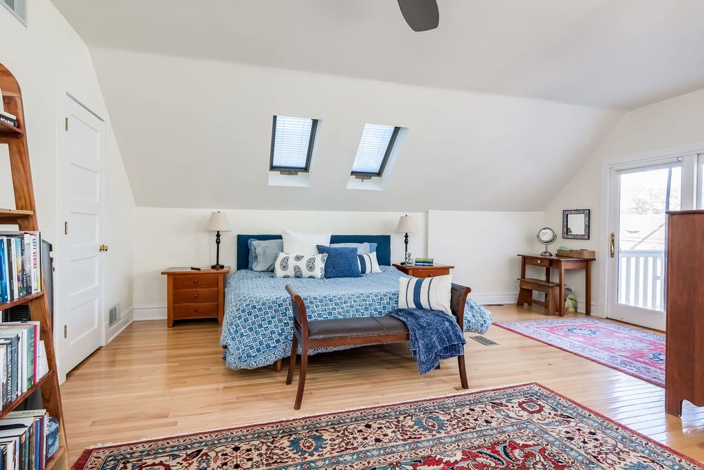 MULTIPLE OFFERS RECEIVED. PLEASE SEND H&B BY SATURDAY 3/7/26, 11am. Whoever said "God is in the details" must have been in this house, because this graceful 4-bed/2-bath home shows precision and care in every high-quality detail. From the light-filled living room in front, to the large, renovated kitchen that opens to a wonderful family room in back, you'll find so many lovingly crafted spaces in which to relax or work or gather with friends and family. Note these coveted features on the first floor: walk-in kitchen pantry, butcher block island, leaded glass DR window, built-in desk in the downstairs bedroom, truly gorgeous full bath, plus, two coat closets AND a mudroom. Moving upstairs, you'll find three more nicely sized bedrooms with enviable closets. The massive primary offers even more private living space, two WICs, and its own balcony. On the lower level, you'll find a laundry, a workshop, and a partially finished basement--a snug place for a great hang. And a very important highlight to this thoughtful home: many green features, which include a new induction stove; new hybrid heat pump; and solar panels (bought-&-paid-for, installed in 2024)--bringing energy savings the new owner will enjoy for many years to come. Make this elegant home yours today!