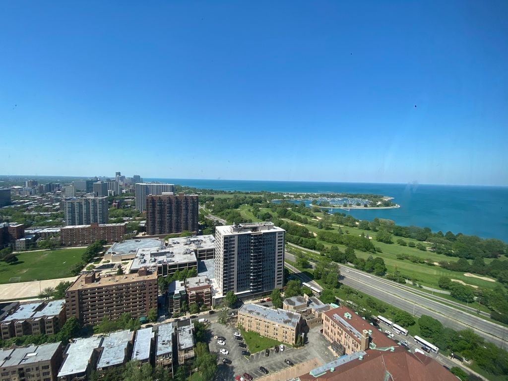 Have your pie in the sky! Situated on the 36th floor, this magnificent 2-bedroom unit offers unparalleled LAKE views that will take your breath away. If you want VIEWS, look no more! The open floor plan creates a seamless flow, allowing you to soak in the incredible sights from every room. The modern kitchen is a chef's delight, featuring elegant cherry cabinets, NEW countertops, and stainless steel appliances. The upgraded bathroom boasts a luxurious walk-in shower. This spacious unit is adorned with beautiful flooring throughout. You'll appreciate the AMPLE closet space, that's large enough to be an OFFICE NOOK, equipped with shelving for all your storage needs. Master bedroom large enough for a KING sized bed. Experience the convenience of living in a full-amenities building that includes a 24-hour door staff, an on-site manager, a party room, a business center, dry cleaners, a state-of-the-art fitness center, a pool, dog park, basketball court, theater, and a full-service convenience store. Embrace the vibrant lifestyle with just steps to Lake Michigan, Lincoln Park, Wrigley Field, and an array of dining and entertainment options. Your assessments cover CABLE, INTERNET, trash, and water. Enjoy the luxury of a garage parking spot B-195, also available for purchase for an additional cost. Non-valet, so you'll never have to wait! Don't miss this opportunity to live in this gem. Pet & investor friendly. Can rent with a min of a 6-mo lease. Seller to pay special assessment at closing. SUBMIT YOUR OFFER! Inquire & schedule a tour with agent Fernando today!