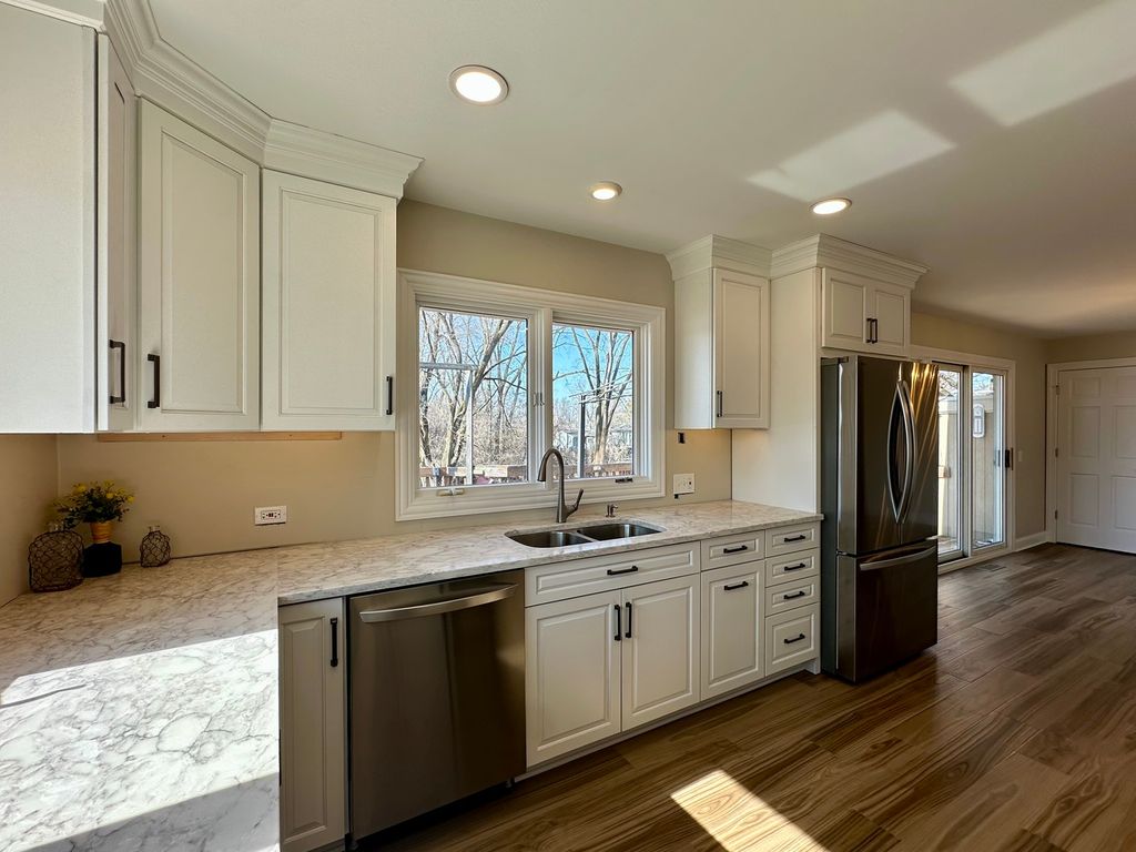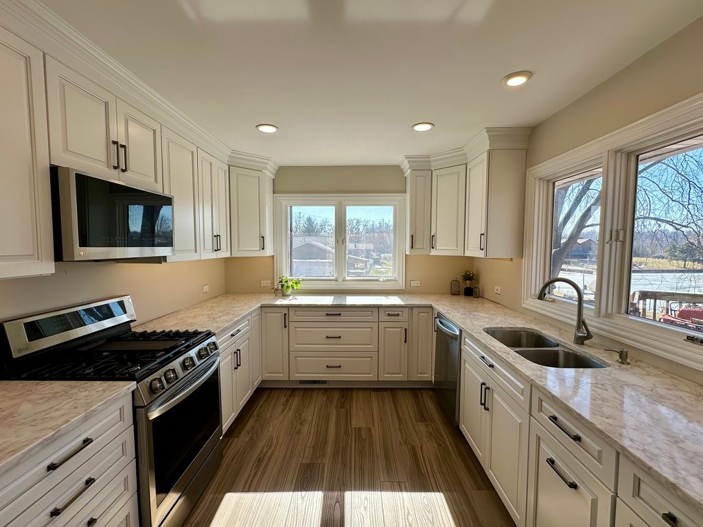 Rare 0.72 Acre Waterfront Property with Channel Access to Grass Lake & The Chain Situated on three parcels in the quiet Farrins Grass Lake neighborhood, this rare 0.72-acre waterfront property offers long channel access to Grass Lake and the Chain - just minutes to Blarney Island and year-round lakefront dining and entertainment. This renovated 3-bedroom, 2-bath ranch offers nearly 1,500 square feet of open-concept living space with an expansive basement providing additional bathroom potential and generous storage. The brand-new kitchen showcases custom cabinetry, quartz countertops, under-cabinet lighting, crown moulding, recessed can lighting, and new stainless appliances including stove, refrigerator, dishwasher, and microwave. Luxury flooring flows throughout the home, complemented by new wooden interior doors, upgraded base and casing trimwork, new toilets and sink fixtures, and freshly painted interior. Major system upgrades include: * New electrical panel (house and garage) * New recessed lighting and fixtures throughout * New outlets * New thermostat * Upgraded plumbing * New water softener * Septic pump replacement * New utility sink * New insulation * New gas line for garage heater * Upgraded garage outlets and opener panel The heated 1,000 sq ft pole barn includes office space, waterfront backyard access, and a remote-operated attic access staircase for additional overhead storage - ideal for contractors, hobbyists, car enthusiasts, or lake toy storage. Enjoy expansive yard space across three parcels, long waterfront frontage, a rare grandfathered-in boathouse, deck for entertaining, and an above-ground pool. Waterfront acreage, modern renovations, workshop space, and Chain access - a rare opportunity in Antioch. The well pump was also replaced for better water pressure. "Priced to reflect foundation repair opportunity. Property being sold as-is. A great opportunity for buyers to build equity with repairs."