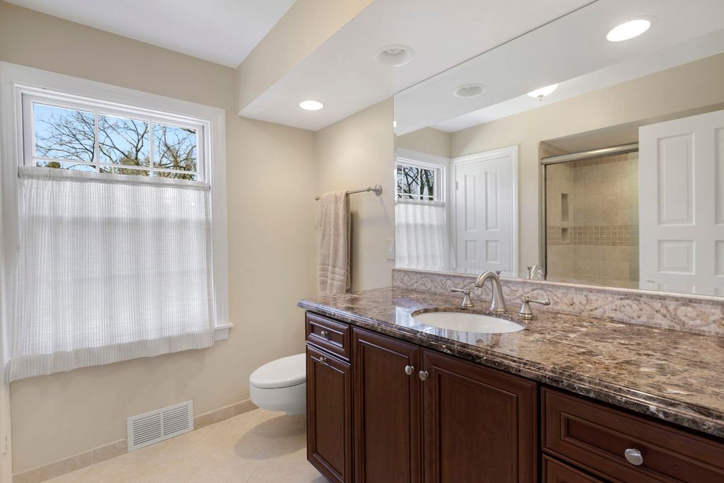 Exceedingly rare opportunity to own a move-in ready home on a private half-acre lot in the highly sought-after Golfview Place neighborhood, ideally located off the East Glenview Road corridor. Situated at the end of a cul-de-sac, this stately red brick residence offers exceptional curb appeal with a DaVinci synthetic slate roof, new Hardie Board siding, and an expansive driveway accommodating up to 12 vehicles. The welcoming foyer opens to a dramatic 31-foot living and dining room with hardwood floors, custom built-ins, floor-to-ceiling windows, and a gas-start fireplace-perfect for everyday living and entertaining. The inviting family room features white paneling, recessed lighting, built-ins, a gas-start fireplace, and patio access. The updated eat-in kitchen showcases gray and white shaker cabinetry, quartz countertops, stainless steel appliances, and a breakfast bar, flowing seamlessly into a sun-filled dining addition surrounded by windows. A paneled den with wet bar, updated powder room, and first-floor primary suite with private patio and spacious bath complete the main level. Upstairs offers a reading loft, two en-suite bedrooms, and a third generously sized bedroom. The finished basement includes a recreation area, office space, exercise room, full bath with steam shower and whirlpool tub, and abundant storage. The fully fenced, professionally landscaped yard features a large stone patio-ideal for outdoor entertaining. A rare combination of space, privacy, and prime location.