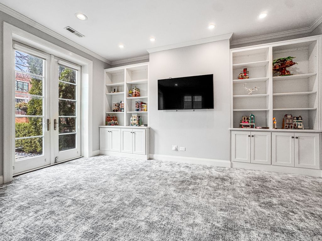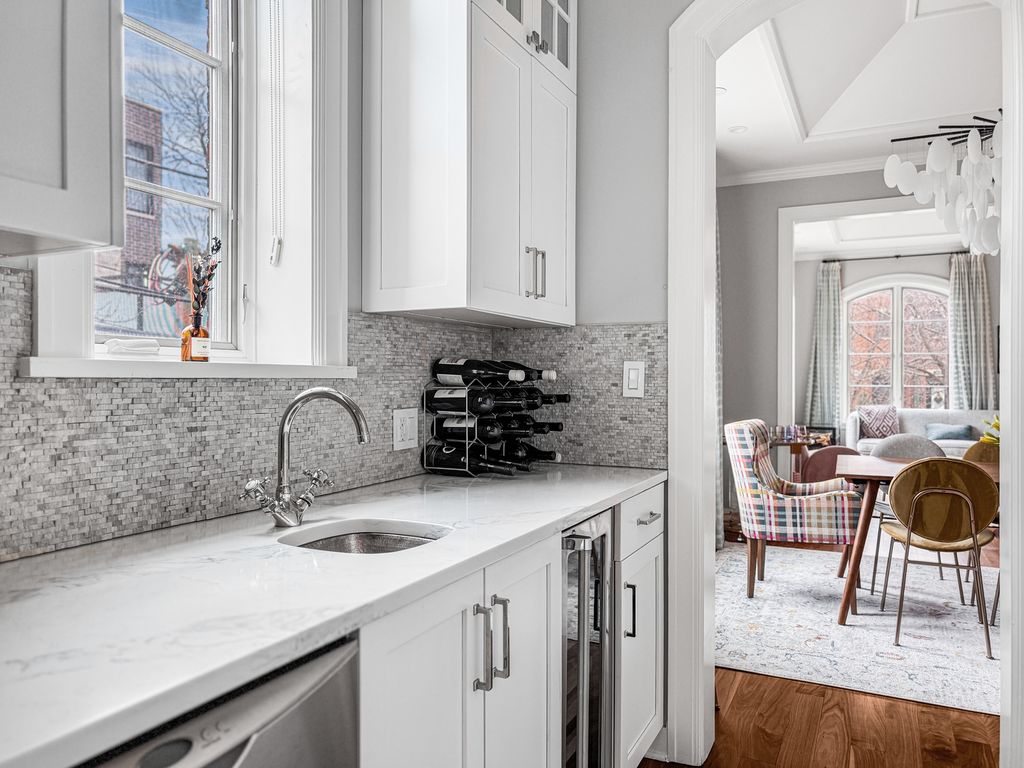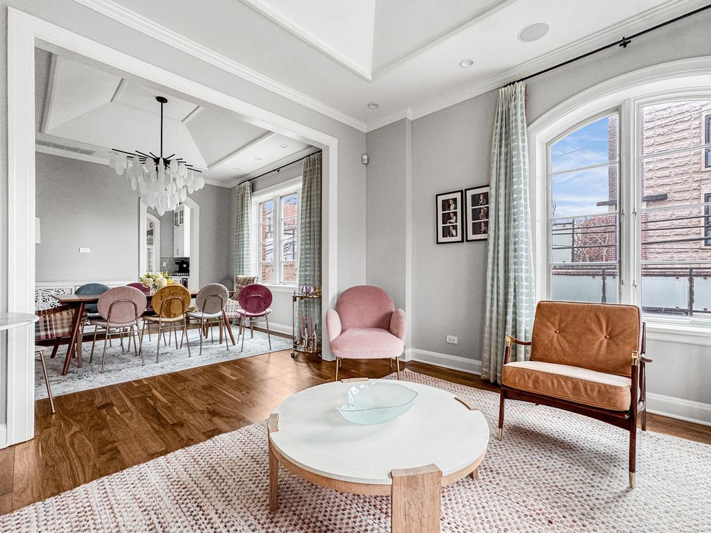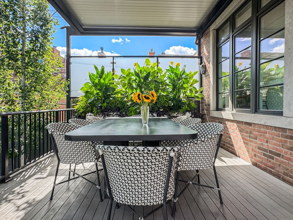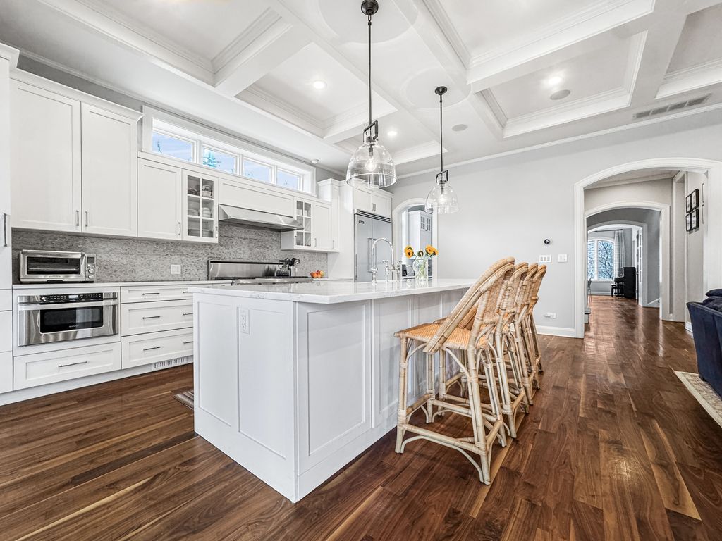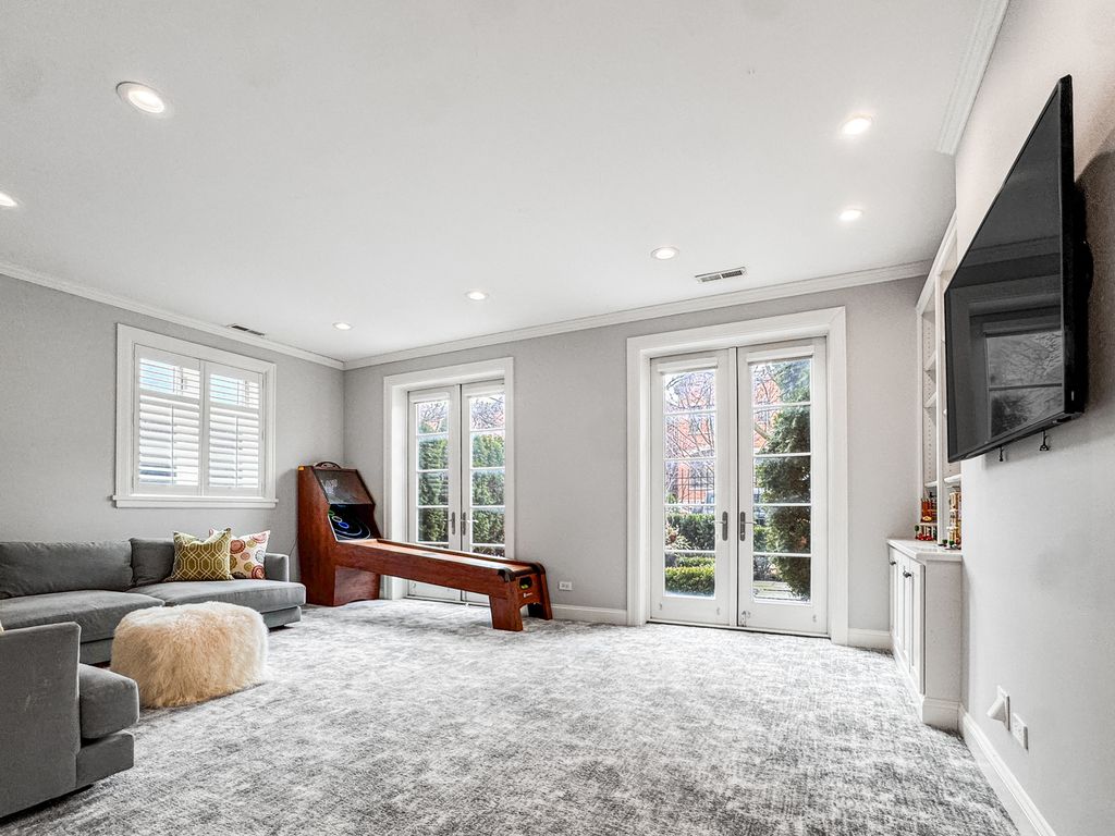 Reminiscent of suburban living, this exceptional 5,600 sq ft brick and limestone home sits on an extra wide corner lot, creating a bright, generously proportioned interior rarely found in the city. In addition to four en suite bedrooms, it offers a rare combination of tall ceilings, a newly renovated backyard, and an attached heated three car garage. The home features comfortable living spaces across three levels. The main level includes living and dining rooms, a private office with gas fireplace, and a white kitchen open to the family room with an oversized island, farmhouse sink, Viking and Miele appliances, and a butler's pantry. A separate breakfast or craft room overlooks the backyard. The family room features a coffered ceiling, a fireplace flanked by bookcases, and built-in desks with storage. French doors open to a terrace with a built-in grill and outdoor dining area beneath a new mechanical louvered pergola. Rarely found in the city, even on wide lots, the oversized backyard includes brick pavers, a firepit, turf lawn, and mature landscaping. The upper level offers three en suite bedrooms, an exercise room, and laundry. The primary suite includes a large dressing room and a bath with vaulted ceiling, dual vanity, new freestanding tub, steam shower, and private commode. The at grade entry level includes a two-story foyer with new hardwood floors, a bright recreation room, the fourth en suite bedroom, and a second laundry room. A mudroom with an adjacent walk-in cedar closet connects to the attached heated three-car garage, which is accessed from the side alley and offers additional storage and flexible space for bikes or gear. The home is located on a highly desirable residential block in west Lincoln Park within the Prescott School District and close to Wrightwood Park and Chi Che Wang Park.