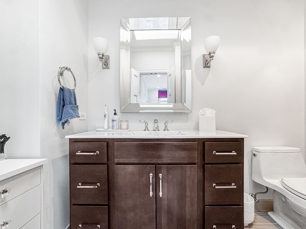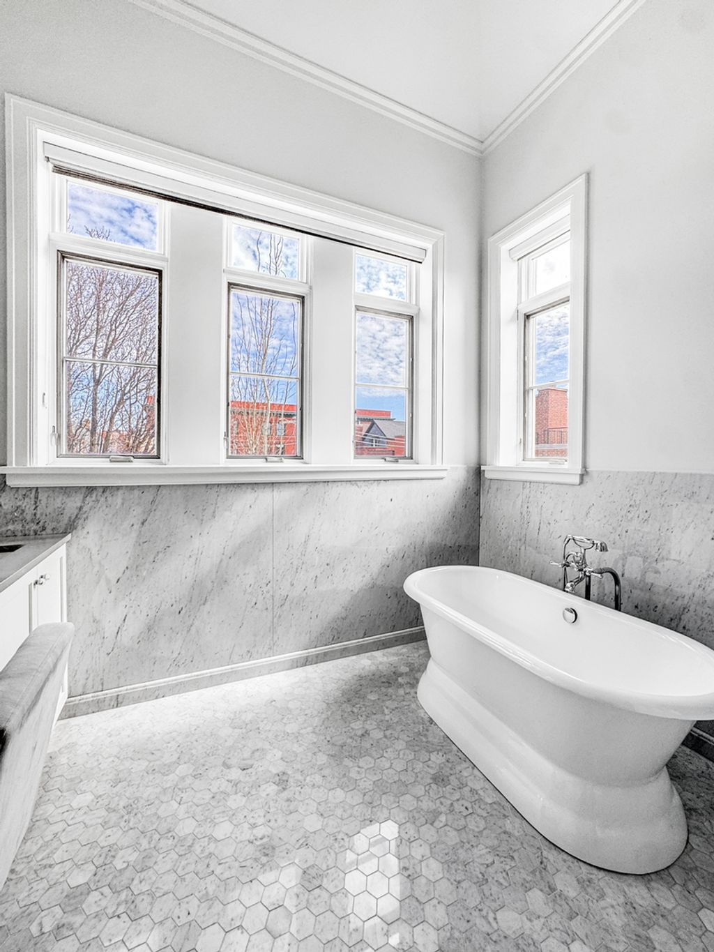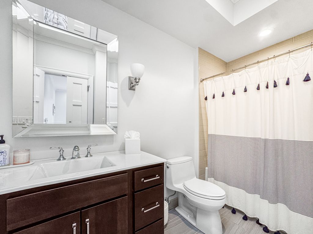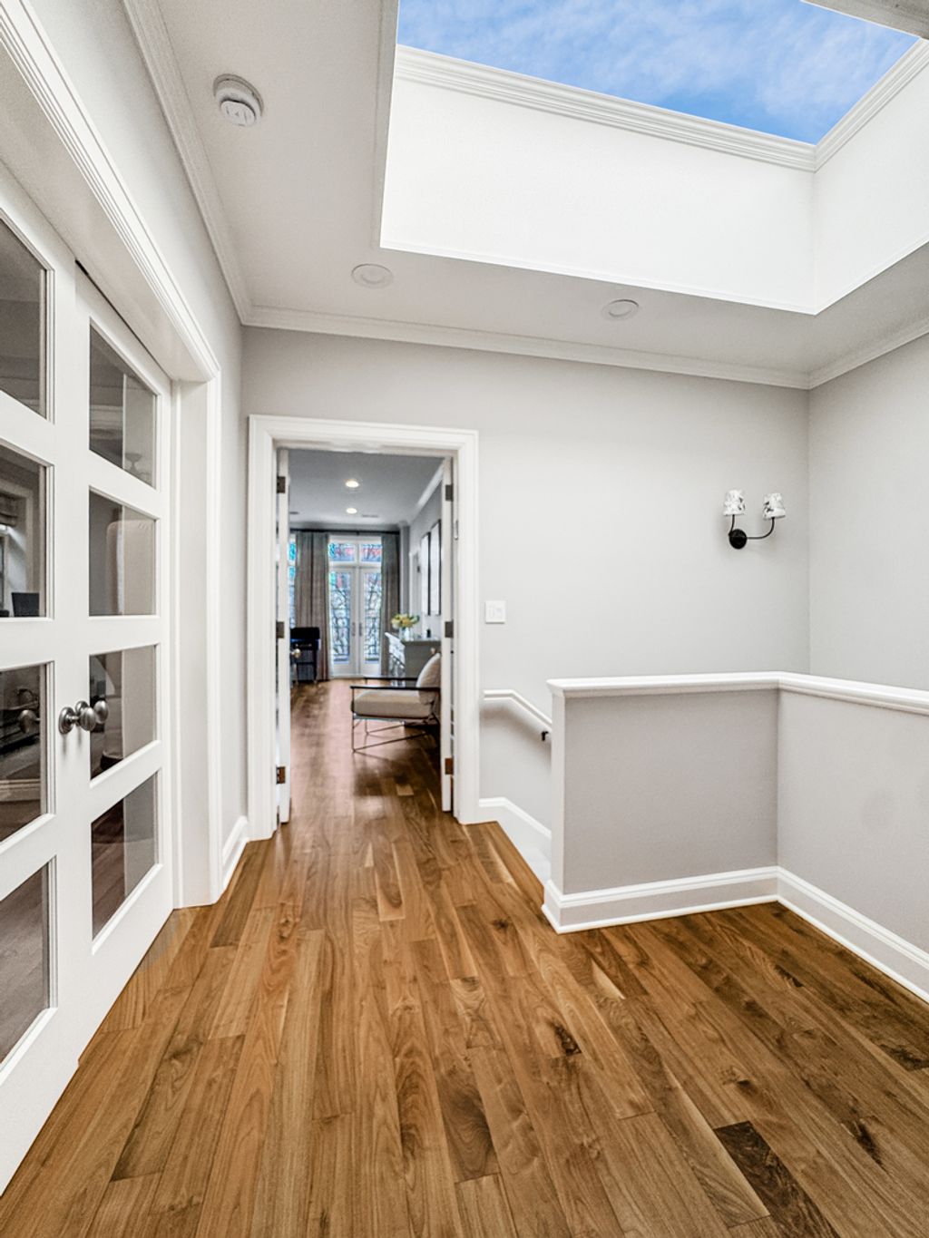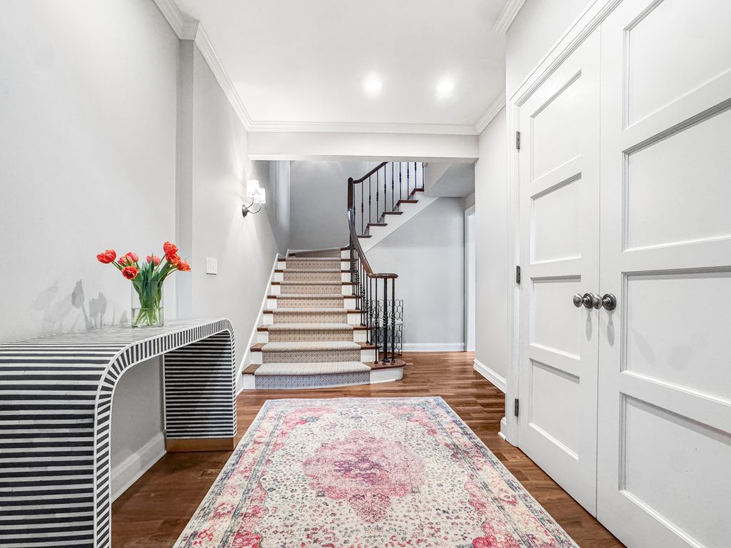Reminiscent of suburban living, this exceptional 5,600 sq ft brick and limestone home sits on an extra wide corner lot, creating a bright, generously proportioned interior rarely found in the city. In addition to four en suite bedrooms, it offers a rare combination of tall ceilings, a newly renovated backyard, and an attached heated three car garage. The home features comfortable living spaces across three levels. The main level includes living and dining rooms, a private office with gas fireplace, and a white kitchen open to the family room with an oversized island, farmhouse sink, Viking and Miele appliances, and a butler's pantry. A separate breakfast or craft room overlooks the backyard. The family room features a coffered ceiling, a fireplace flanked by bookcases, and built-in desks with storage. French doors open to a terrace with a built-in grill and outdoor dining area beneath a new mechanical louvered pergola. Rarely found in the city, even on wide lots, the oversized backyard includes brick pavers, a firepit, turf lawn, and mature landscaping. The upper level offers three en suite bedrooms, an exercise room, and laundry. The primary suite includes a large dressing room and a bath with vaulted ceiling, dual vanity, new freestanding tub, steam shower, and private commode. The at grade entry level includes a two-story foyer with new hardwood floors, a bright recreation room, the fourth en suite bedroom, and a second laundry room. A mudroom with an adjacent walk-in cedar closet connects to the attached heated three-car garage, which is accessed from the side alley and offers additional storage and flexible space for bikes or gear. The home is located on a highly desirable residential block in west Lincoln Park within the Prescott School District and close to Wrightwood Park and Chi Che Wang Park.