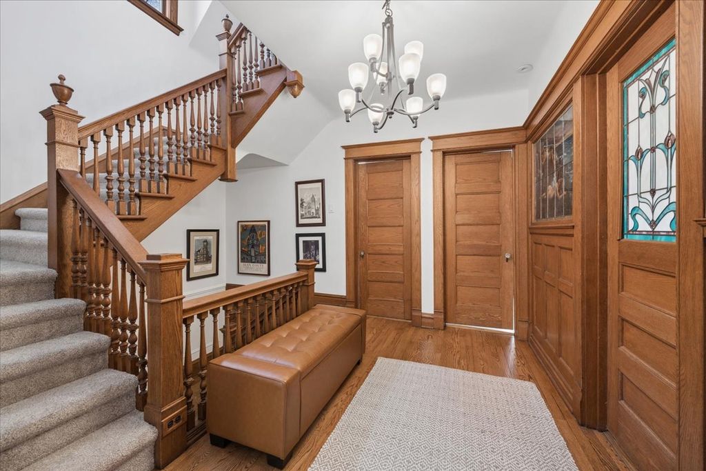 Nestled in the heart of the Frank Lloyd Wright Historic District, this remarkable Village of Oak Park home traces its roots to 1903, when the original permit was pulled by owner Adolph G. Burtar and constructed by the renowned Pillinger Brothers. Over 120 years later, the craftsmanship and character of that era remain beautifully intact. The street presence is welcoming and stately, drawing you in before you ever reach the front door - and what a front door it is. Solid wood with true brass and iron hardware, a vintage tile floor, double benches with storage, brass hooks, and an abundance of stained glass in perfect condition make the front entrance a true introduction to everything this home has to offer. Step into the foyer and be greeted by intricate quarter-sawn oak carvings, soaring ceilings, tall baseboards, elegant moldings, and large sun-filled rooms that speak to a level of craftsmanship rarely found today. With 5 bedrooms, 3 full baths, 1 half bath, and 2 offices above grade spread across three floors of living, there is truly room for everyone. And then comes the amazing surprise - a brand new, fully appointed 1-bedroom apartment in the basement, accessible from both the exterior and the front foyer. Whether for a live-in nanny, grandparents, exchange students, or a graduate student, the flexibility this space offers is nothing short of brilliant. The outdoors are fantastic at 530 too! Al fresco living begins on the screened-in porch just off the kitchen, where you can relax overlooking a large, lovely backyard with mature plantings, a paver patio, and a tranquil water feature. Two-car garage parking plus an additional parking space ensure practicality - though you may find yourself walking more often than not. This incredibly central location puts you just a 5 minute walk from Oak Park River Forest High School and the Farmer's Market, 10 minutes to Whittier Elementary, 15 minutes to the El train, and 20 minutes to the movies, shops, and restaurants that make Oak Park one of Chicagoland's most beloved communities. This is not just a home - it is a piece of living history.