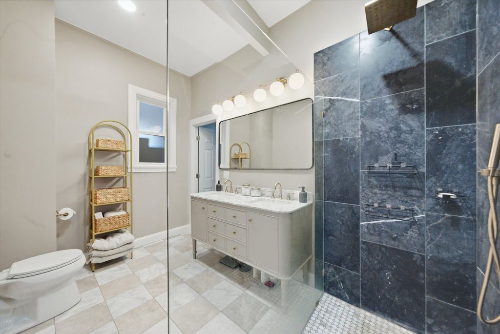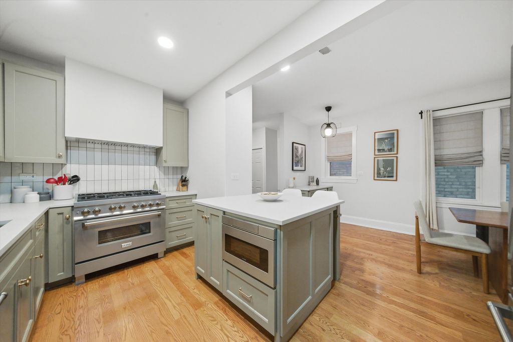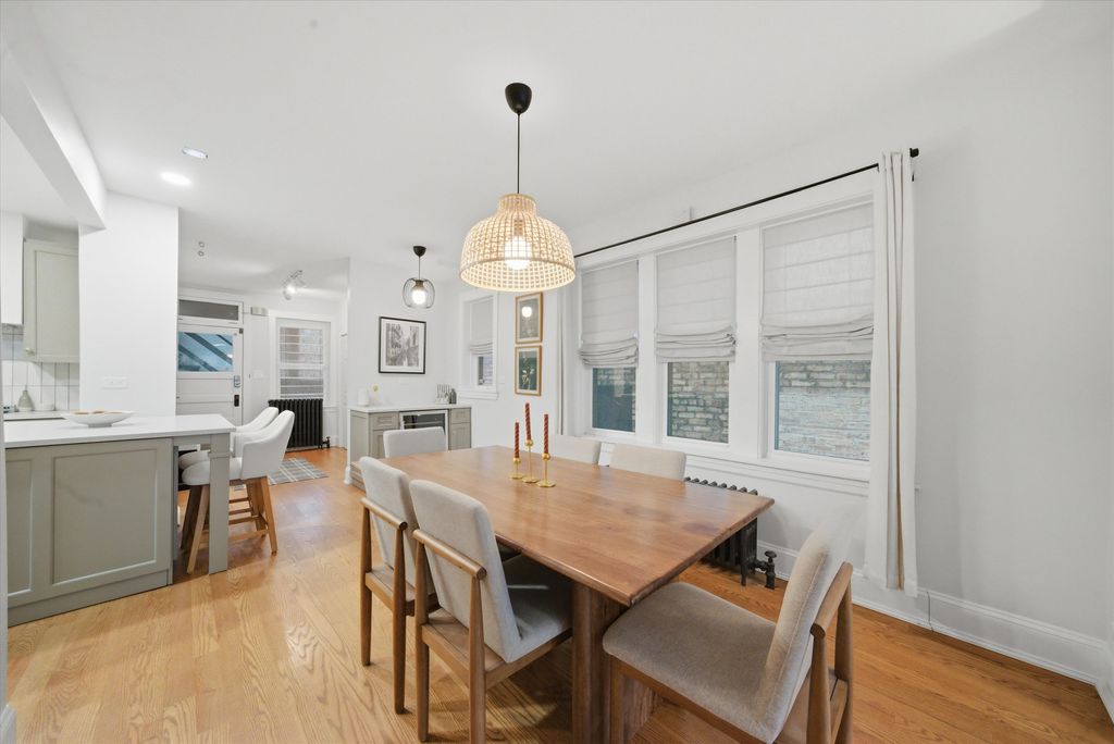 Welcome to this completely renovated, move-in-ready brick single-family home on a beautiful tree-lined street in West Town, just steps from everything Division Street has to offer. This charming residence seamlessly blends modern updates with timeless character. The main level features a versatile office or guest bedroom, a full bath, and a bright, open living and dining area designed for entertaining. High ceilings, custom trim, and abundant natural light create a warm and inviting atmosphere. The upgraded chef's kitchen is a true standout, complete with custom cabinetry, a large island, stylish backsplash, high-end stainless steel appliances, and a wine fridge. Upstairs, the second level offers a spacious primary suite with a spa-like ensuite bath and an expansive custom walk-in closet with in-unit washer and dryer. An additional bedroom and full bath complete this floor. The third level boasts a massive loft space that can serve as a fourth bedroom, family room, office, or flex space to suit your needs. An unfinished partial basement provides excellent storage. Outside, enjoy a private, spacious backyard and the convenience of a two-car detached garage. All of this in an unbeatable location, just a short walk to some of West Town's favorite restaurants, shops, and entertainment. Explore the property in 3D-click the 3D tour button to take a virtual walk-through of every detail!