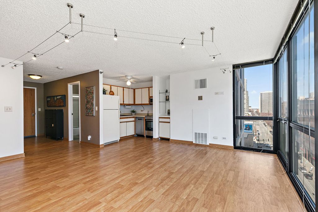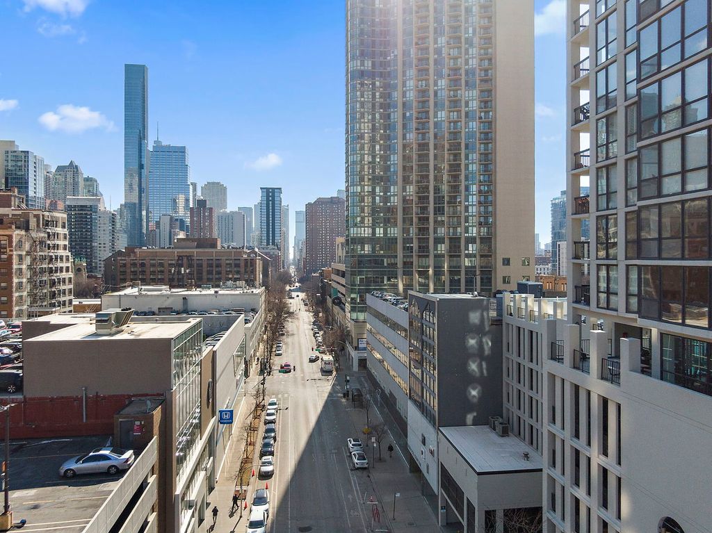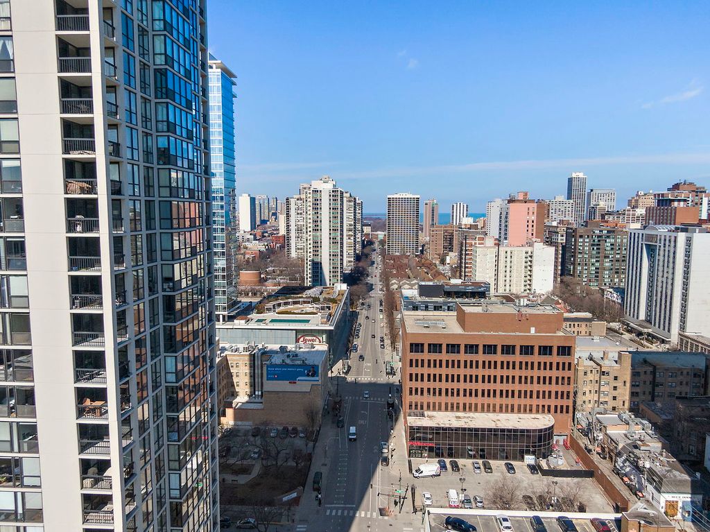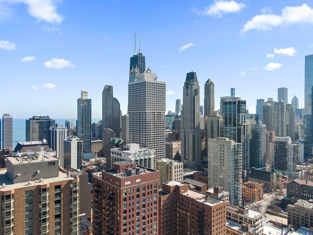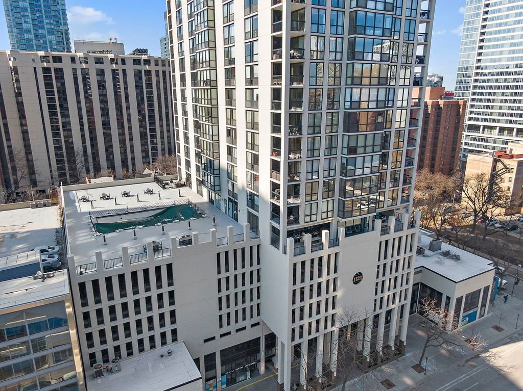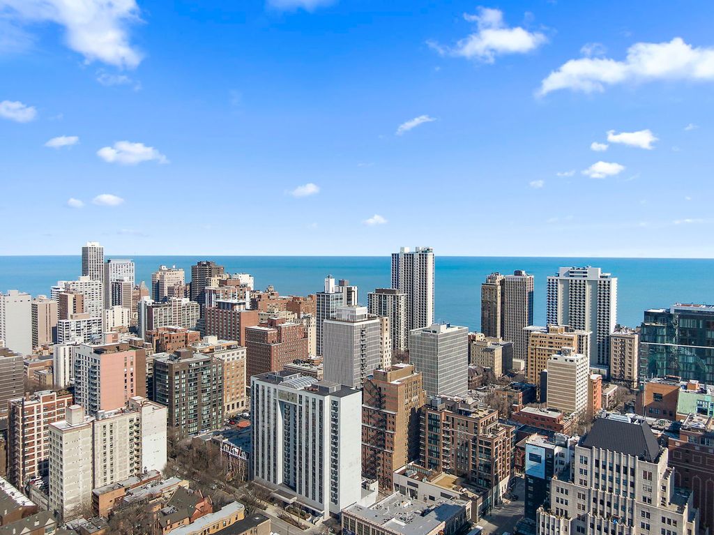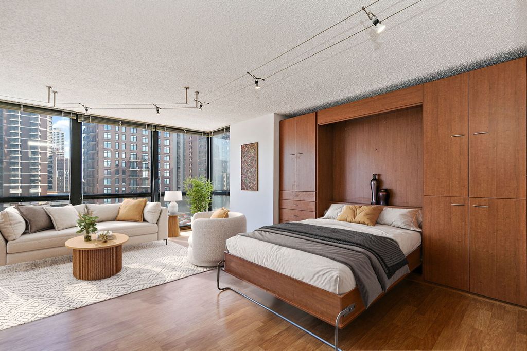 Enjoy breathtaking panoramic city views from this beautifully designed studio end unit condo in the heart of Chicago's prestigious Gold Coast, where floor-to-ceiling windows flood the spacious living area with natural light and create an inviting, open atmosphere perfect for both relaxing and entertaining. The thoughtfully designed layout features a Murphy bed with built-in storage, maximizing functionality, while the corner kitchen offers abundant cabinet space, new stainless steel stove and dishwasher, and a charming eat-in area ideal for casual meals or morning coffee. A generous walk-in closet with custom organizers and a full bath provide everyday convenience and organization. Residents enjoy true resort-style living with premium amenities including a sparkling outdoor pool and sundeck, covered grilling area, fully equipped fitness center, party room, bike room, and the peace of mind of a 24-hour doorman. Nearly all utilities are included (except electric), along with a dedicated storage area, and a garage parking space is available for an additional $25,000. Perfectly situated just steps from public transportation including the Red Line, premier shopping, acclaimed restaurants, and the lakefront at Oak Street Beach, this exceptional home offers the ideal blend of luxury, convenience, and vibrant city living.