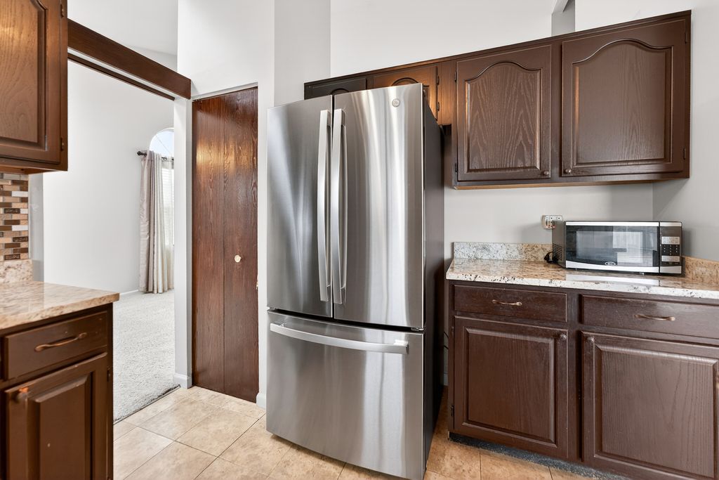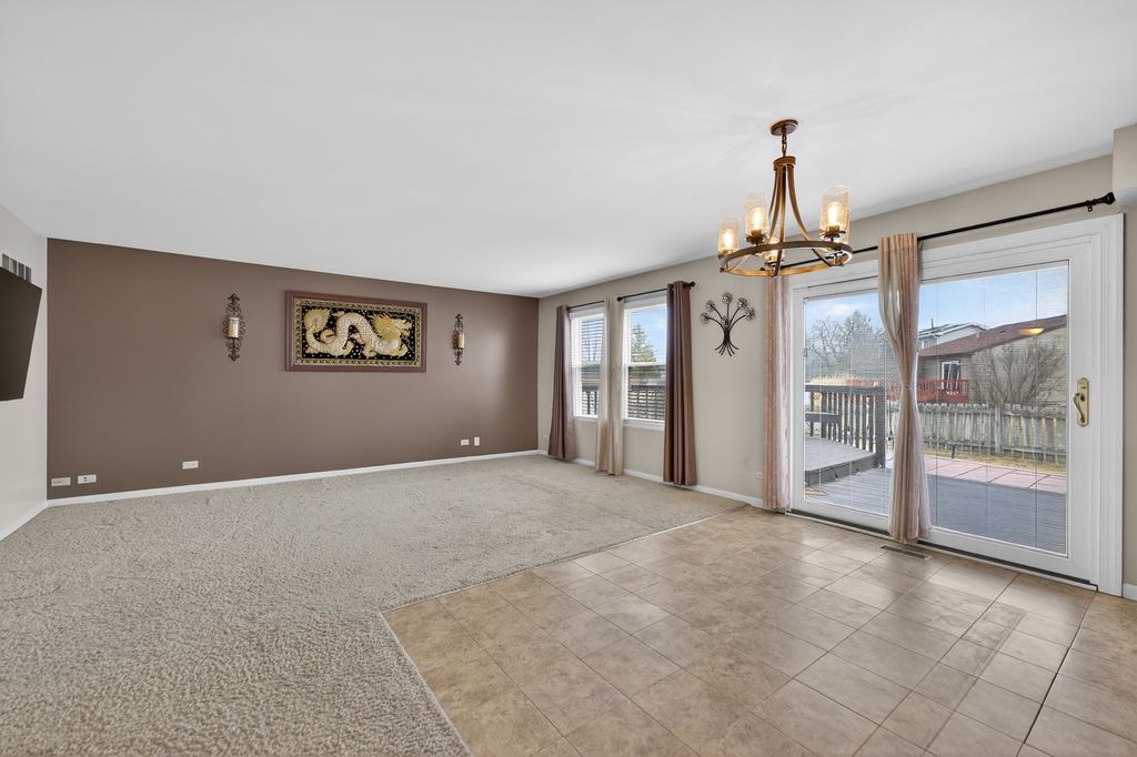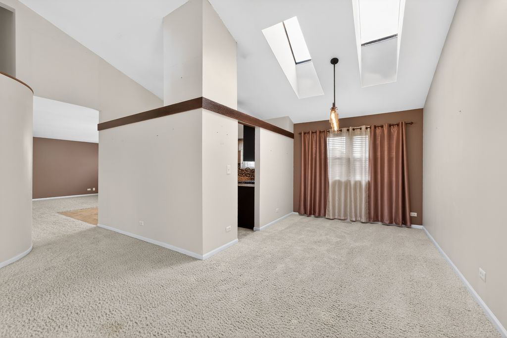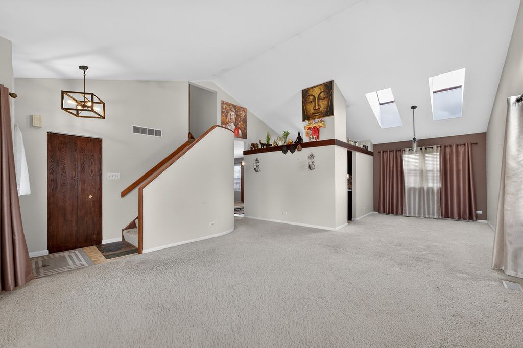Beautiful 3-bedroom, 2.1-bath home located on a desirable corner lot with great curb appeal! The bright and open main level features soaring cathedral ceilings in the living room, dining room with two skylights, abundant natural light creating a spacious and inviting atmosphere. The kitchen has granite countertops and brand new stainless steel appliances. Kitchen opens to the large family room, making it perfect for both everyday living and entertaining. Sliding glass doors lead to the backyard for easy indoor-outdoor living. Upstairs, the primary bedroom features two closets providing excellent storage. Enjoy the outdoor living space with a deck and brick patio, ideal for summer gatherings, grilling, or relaxing evenings. Additional highlights include a convenient laundry room, functional layout, and garage door replaced in 2025. Located close to major highways, shopping, dining, and everyday conveniences. This home offers the perfect combination of space, comfort, and location!