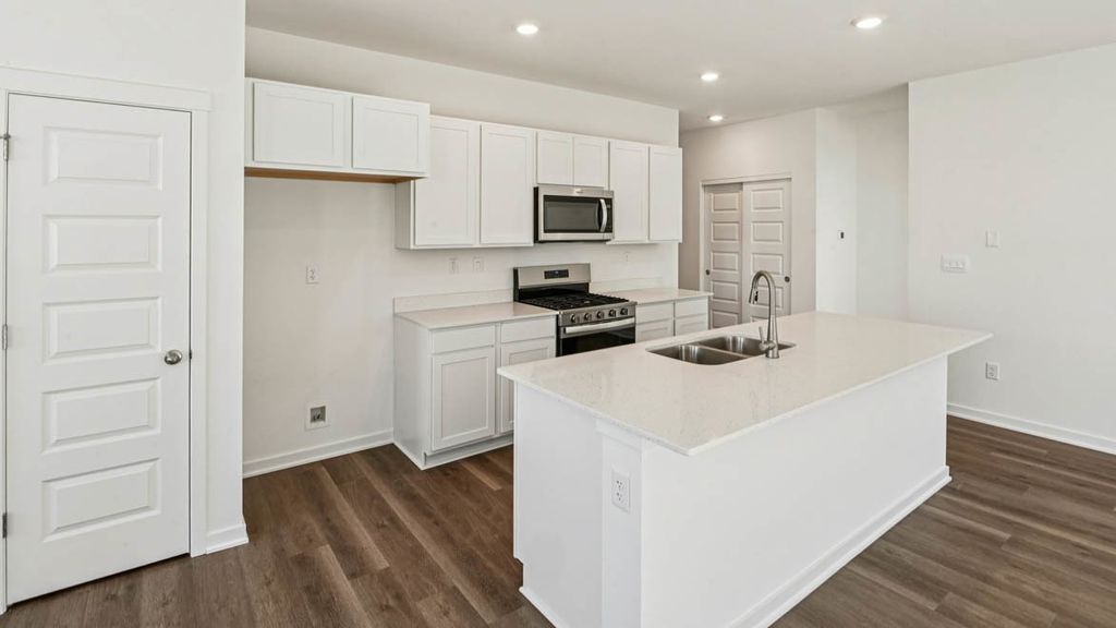 Envision yourself at 2417 Glacier St.in Pingree Grove, Illinois, in a beautiful new low maintenance ranch townhome in the Cambridge Lakes North community. This ranch townhome will be ready for a Summer Move-In! Homesite includes fully sodded yard and patio. The Callihan plan offers 1,360 square feet of living space with 2 bedrooms, 2 baths, and 9-foot ceilings. Enjoy the Callihan's open concept living room, kitchen, and dining area that's a great space for all your entertaining needs! Your kitchen features designer cabinetry, stainless steel appliances, pantry, and large island with eating bar. Enjoy your private get away with your spacious primary bedroom, and en suite bathroom with raised height dual sink vanity, and walk-in shower. All Chicago homes include our America's Smart Home Technology, featuring a smart video doorbell, smart Honeywell thermostat, smart door lock, Deako smart light switches and more. Photos are of a similar home and model home. Actual home built may vary.