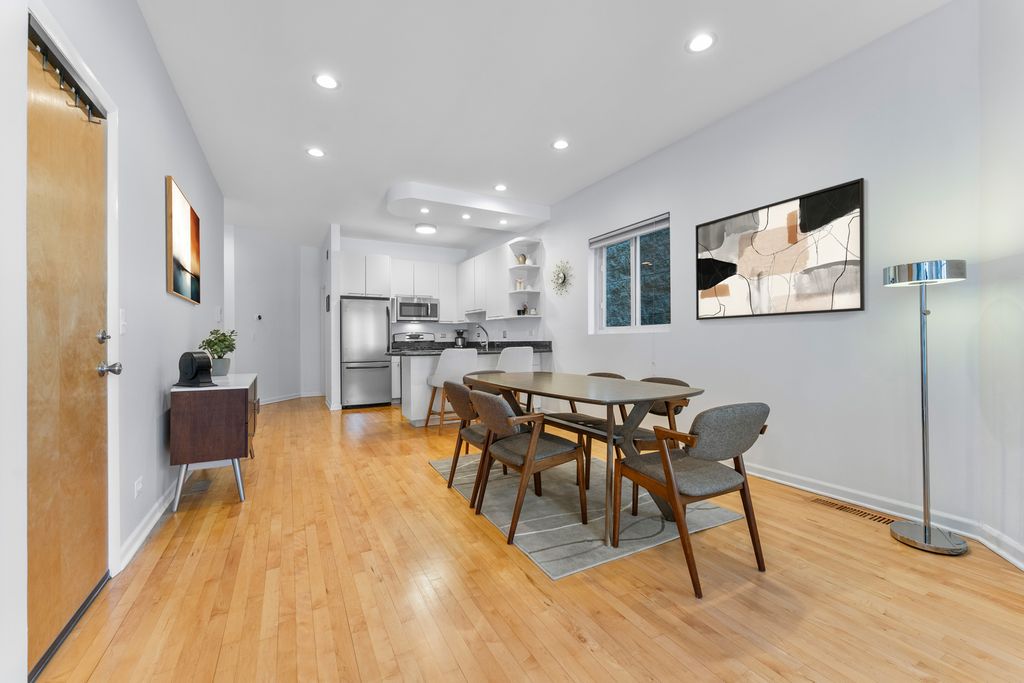 Live in the heart of it all, in one of Wicker Park's most coveted pockets. Tucked on a quiet, tree lined stretch of Wood Street, this light filled duplex down delivers the perfect balance of neighborhood charm and city energy. Just steps from everything that makes this one of Chicago's most dynamic places to call home. Set within an intimate two unit building, this 3 bed, 2 bath residence lives large with a smart, functional layout and incredible indoor/outdoor flow. The sun drenched main level features a granite and stainless steel kitchen with breakfast bar seating that seamlessly opens into the living and dining space, ideal for casual mornings or hosting friends before a night out. Downstairs, the expansive recreation/family room creates a true second living space; perfect for movie nights, a gym, or a guest retreat. Then there's the rooftop deck over the garage, your own skyline escape. Whether it's sunset cocktails, weekend brunches, or simply soaking up the city vibe, this space delivers. Garage parking included. Boutique building. Unbeatable location. This is Wicker Park living: walk to the best restaurants, coffee shops, boutiques, nightlife, parks, and the Blue Line. Everything you want, exactly where you want to be.