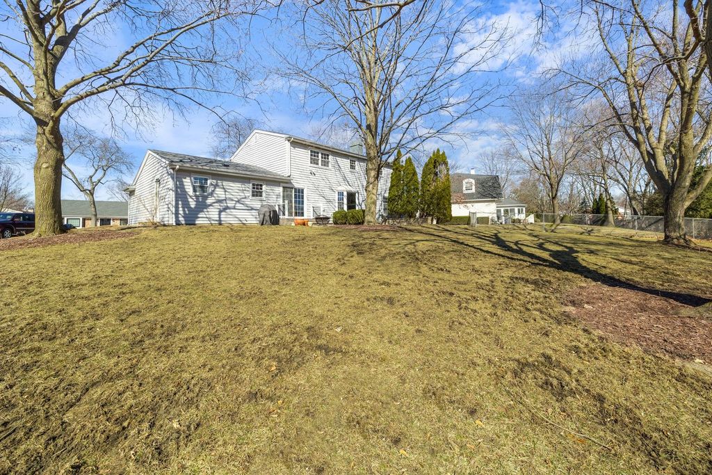 This is the home your family has been waiting for. Meticulously maintained and thoughtfully updated, this Hunting Ridge residence is ready for its next chapter. Upon entry, you're welcomed by warm natural light that fills every room. The main level offers an ideal layout for both everyday living and entertaining, featuring an eat-in kitchen, formal dining room, and inviting family room with a wood burning fireplace and brilliant bay window. A spacious adjacent living room provides additional space to relax or gather with guests. Upstairs, you'll find four generously sized bedrooms, including three with refinished parquet floors, an updated full hall bath, and a large primary suite. The fully renovated primary bath boasts a double vanity, walk-in closet, and a spacious walk-in shower. Additional highlights include a partially finished basement with a large rec room and two crawl spaces for ample storage, an attached two-car garage, new roof (2023), whole house copper wiring, and an oversized backyard with a brick paver patio - perfect for outdoor entertaining. Ideally located within walking distance to Hunting Ridge Elementary and Fremd High School, as well as parks, bike and walking paths, and all that Palatine has to offer.