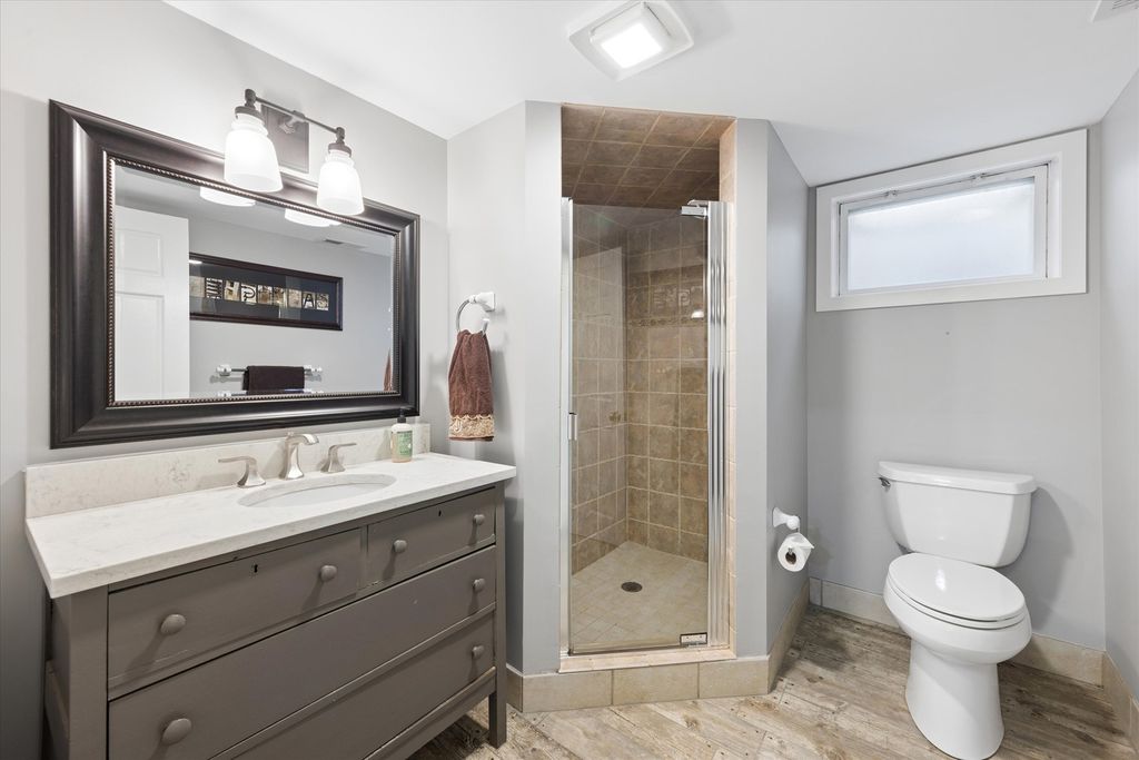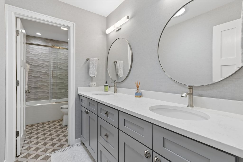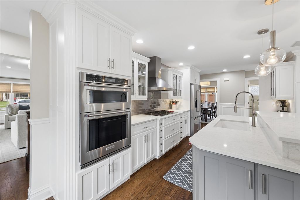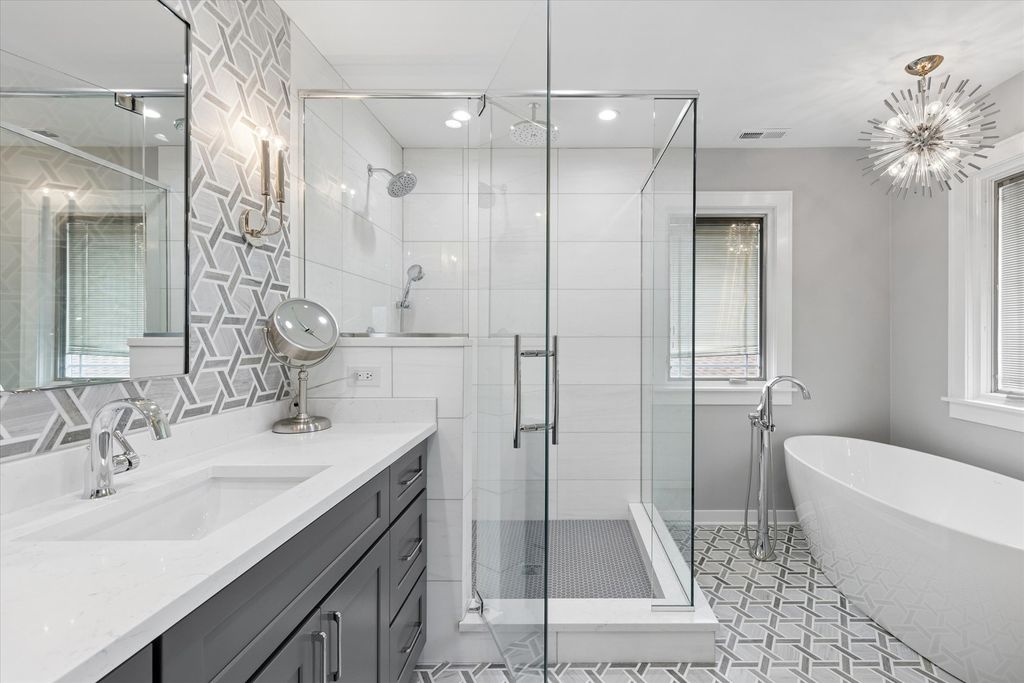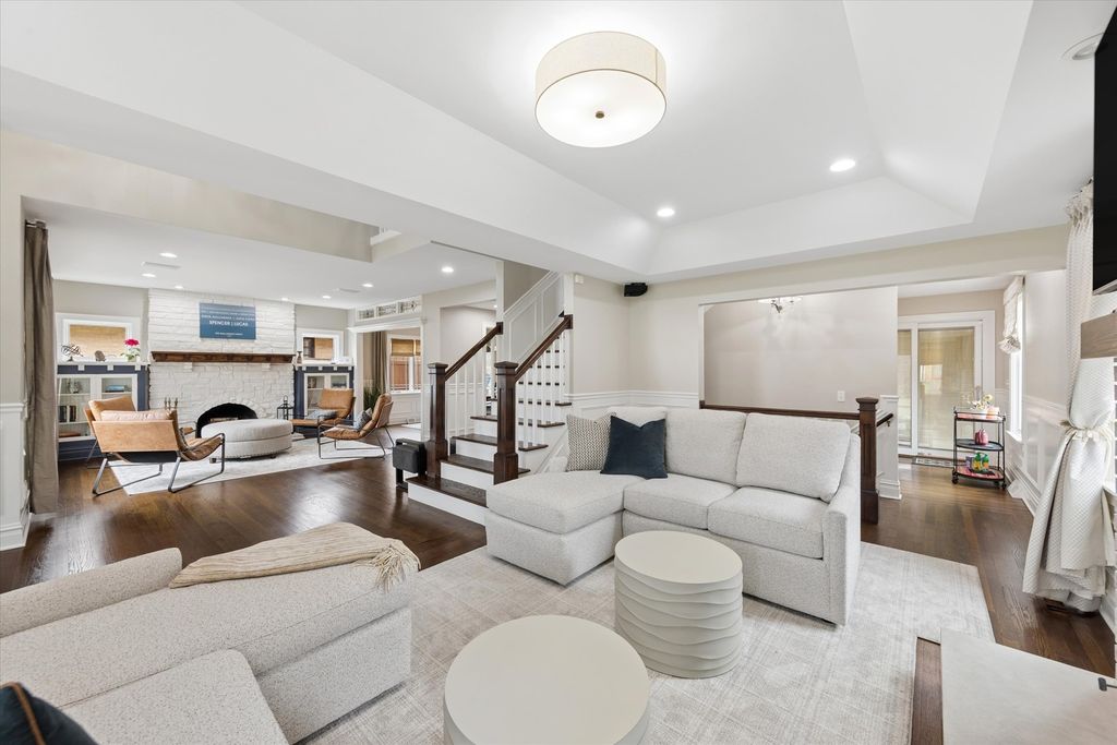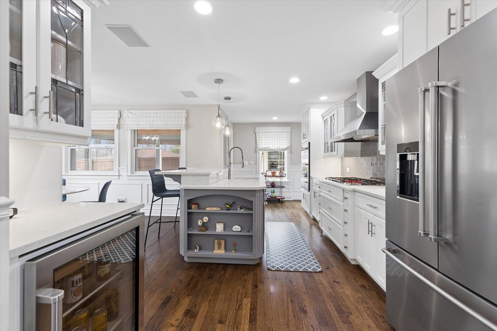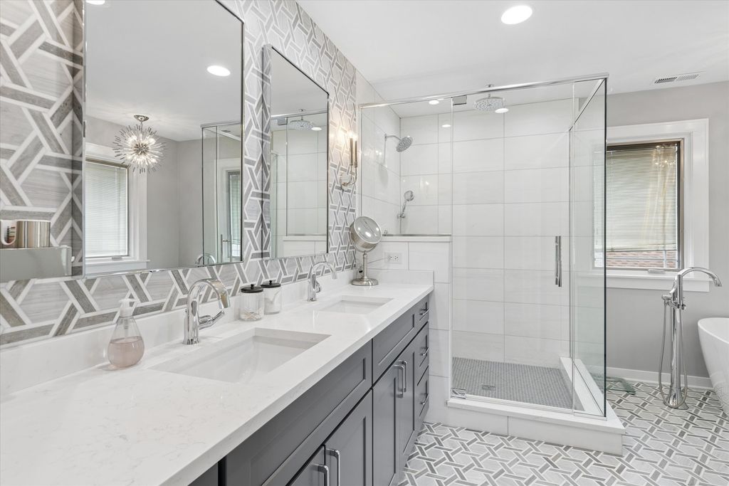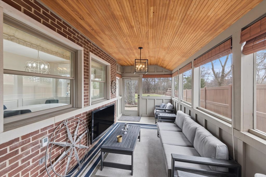 Experience architectural elegance on one of Elmhurst's most premier streets. Situated adjacent to the Illinois Prairie Path, this exquisite Craftsman/Prairie-style home has been masterfully renovated to blend mid-century character with high-end modern luxury. From the moment you step onto the sprawling front porch and through the custom handcrafted front door, the attention to detail is evident. The main level is designed for the sophisticated entertainer. The inviting living room features a cozy gas fireplace, while the adjacent cocktail room serves as a focal point of the home, boasting a wood-burning fireplace, stunning custom built-in shelving, and a decorative stained-glass windowpane. Tucked perfectly behind is the separate dining room, creating a seamless flow for hosting guests. The modernized chef's kitchen is equipped for the culinary enthusiast with quartz countertops, a Wolf stove, a Subzero beverage fridge, and custom cabinetry with stained-glass accents matching the home's period charm. A functional first-floor office with beautiful built-ins and a full bathroom offer ideal "work-from-home" versatility. Upstairs, the primary suite is a true sanctuary, featuring a large walk-in closet and a private balcony overlooking the scenic Wild Meadow Trace. The newly remodeled primary bath exudes luxury with exquisite marble tile, radiant heated floors, a soaking tub, and an extended shower. Three additional spacious bedrooms and another recently remodeled luxury bath complete the upper level. The fully finished basement is an entertainer's paradise, featuring a potential 5th bedroom, an additional fireplace, a quartz-topped wet bar, a wine room, and a unique hidden oven. Outdoor living is elevated by a three-season screened sun porch with radiant heated floors and an outdoor fireplace, overlooking a beautifully landscaped yard. Enjoy unbeatable proximity to downtown Elmhurst, the Metra, and the "Monkey Trails." From the famous Christmas Eve luminaries to the vibrant block parties, this is more than a home-it's a lifestyle. Schedule your private tour today!