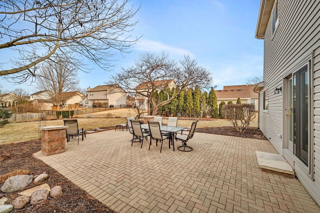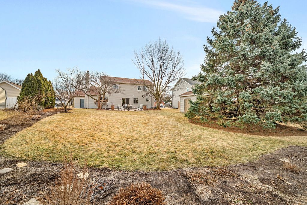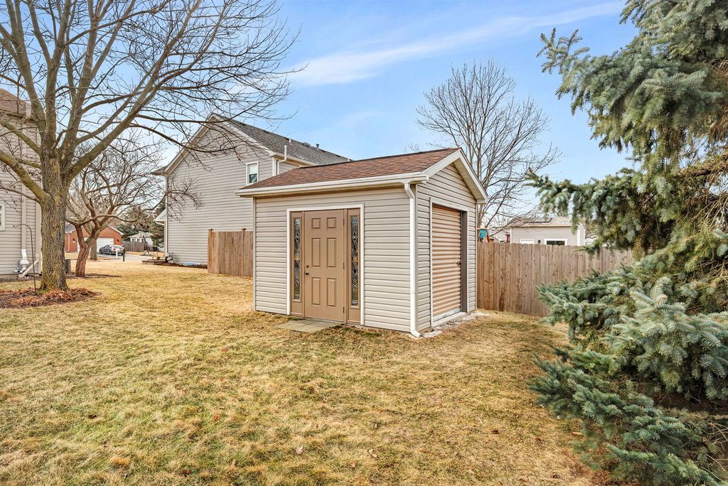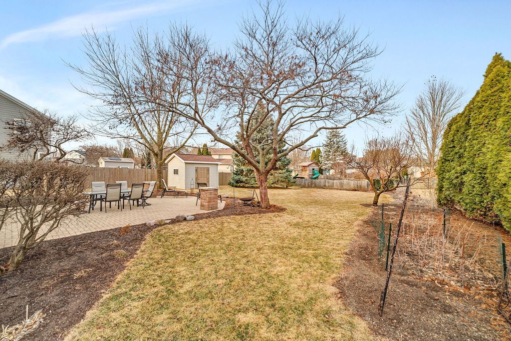 This stunning and extremely well-cared-for home offers 4 SPACIOUS BEDROOMS, 2.5 BATHROOMS, and a 3-CAR GARAGE, combining timeless character with thoughtful updates. Rich original WOODWORK, solid six-panel doors, decorative molding, and detailed architectural headers create warmth and craftsmanship throughout the home, while 6-inch baseboards on the main level and 4-inch trim upstairs further enhance its classic appeal. The inviting family room features a beautiful gas-start, wood-burning fireplace framed by custom built-in shelving, creating a striking focal point for everyday living and entertaining. The eat-in kitchen offers abundant natural wood cabinetry, generous counter space, and a large pantry, providing both charm and functionality. Upstairs, the spacious primary suite includes a private bath and an impressive 12' x 6' WALK-IN CLOSET, while another oversized bedroom also features its own walk-in closet, offering exceptional storage. A full unfinished basement provides endless potential for additional living space. Outdoor living is equally impressive with a PAVER PATIO in a classic herringbone pattern, decorative brick columns, a large open yard with mature trees and landscaping, and a 10' x 12' GARDEN SHED. Major updates include a NEW ROOF, gutters, and downspouts in 2019, plus the added peace of mind of a home warranty. Ideally located within walking distance to Hudson Park, Fox Chase Elementary School, downtown Oswego's shops and restaurants, and the scenic FOX RIVER TRAIL with over 45 miles of trails, this immaculate home with NO HOA offers the perfect blend of comfort, craftsmanship, and location.