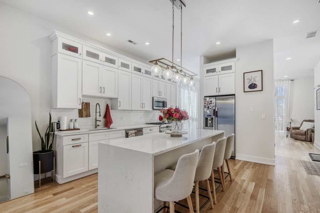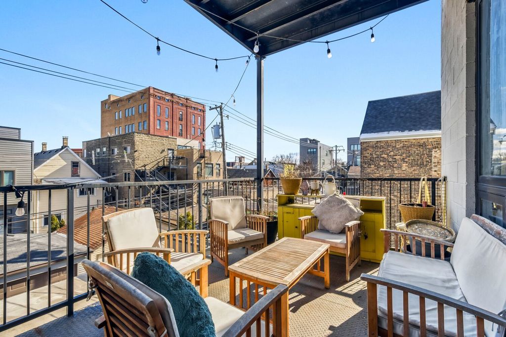 Experience the essence of modern luxury in this architecturally striking new construction duplex-up penthouse offering 3 bedrooms, 2.1 baths, and four incredible outdoor spaces-including a massive private rooftop with breathtaking city views. From the moment you enter, the superior craftsmanship and meticulous attention to detail are undeniable. Expansive ceiling heights and a highly coveted open-concept layout create a bright, airy atmosphere that's perfect for both everyday living and unforgettable entertaining. Designer-appointed lighting and upscale finishes elevate every corner of the home. The chef's kitchen is a true showpiece, featuring custom cabinetry, sleek waterfall quartz countertops with a full-height backsplash, and premium Bosch appliances. The seamless flow between kitchen, dining, and living spaces makes hosting effortless. Upstairs, the spacious primary suite offers a serene retreat with a beautifully finished en-suite bath. Two additional bedrooms provide flexibility for guests, a home office, or additional living space. Smart home technology-including a Nest thermostat and intercom system-adds modern convenience to this sophisticated residence. With four private outdoor areas, including an expansive rooftop oasis ideal for lounging, dining, and taking in panoramic skyline views, this home truly stands apart. Ideally situated near the heart of Pilsen and adjacent to a park on a quiet cul-de-sac, this location offers easy access to I-90/94 and is just minutes from the South Loop shopping corridor, including Jewel and Whole Foods. This is luxury living redefined-modern design, exceptional outdoor space, and an unbeatable Chicago location all in one extraordinary home.
