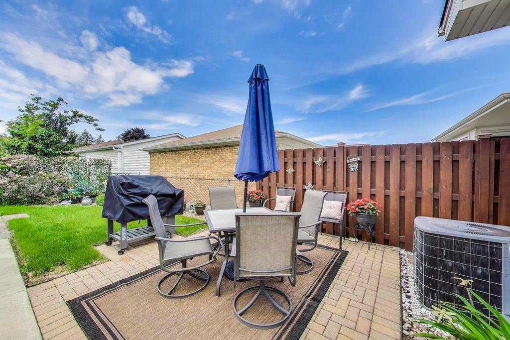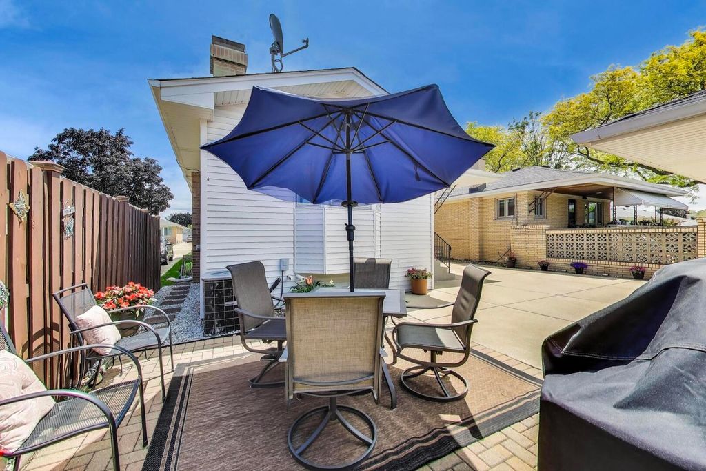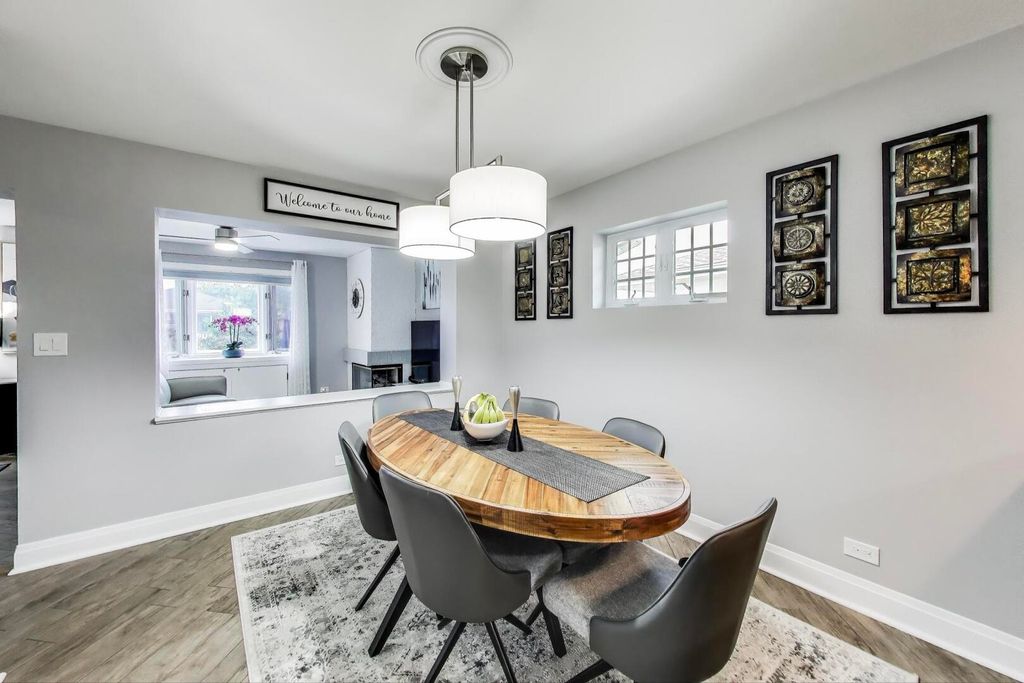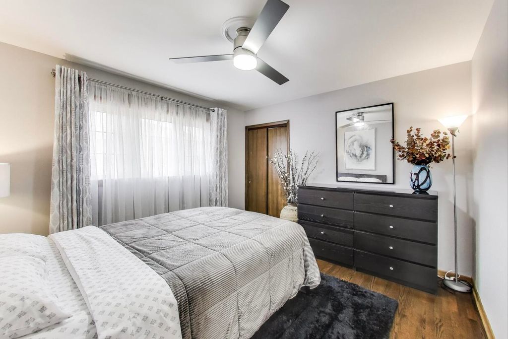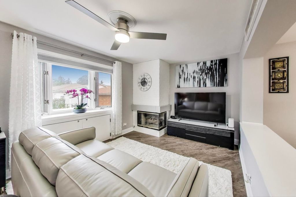 Expanded and beautifully updated raised ranch with a family room addition in highly desirable Norridge offering over 2,700 square feet of thoughtfully designed living space and true move-in condition! Gleaming refinished hardwood floors, fresh paint, and meticulous attention to detail throughout. The sun-filled living room features a Marvin picture window with an additional pane for enhanced sound reduction and energy efficiency. The spacious eat-in kitchen, updated in 2016, showcases Hickory cabinetry, granite countertops, and stainless steel appliances, with a generous eating area that comfortably fits a 6-8 person table and opens through a pocket opening to the inviting family room. The family room addition features a gas fireplace and exposed brick accent wall, offering flexible space for a home office, homework station, playroom, or cozy TV retreat. Three spacious bedrooms with hardwood floors and ample closet space. Both full bathrooms, one on the main level and one in the basement, have been tastefully updated. The finished basement offers luxury vinyl plank flooring, table space, a recreation area, and a large utility/storage room with exterior access to the yard. Additional highlights include soundproof windows, a high-efficiency water heater (2023), refrigerator replaced in 2025, side drive leading to a brick 2.5-car garage, and yard space. Conveniently located near transportation, expressways, forest preserves, and the Des Plaines River Trail.