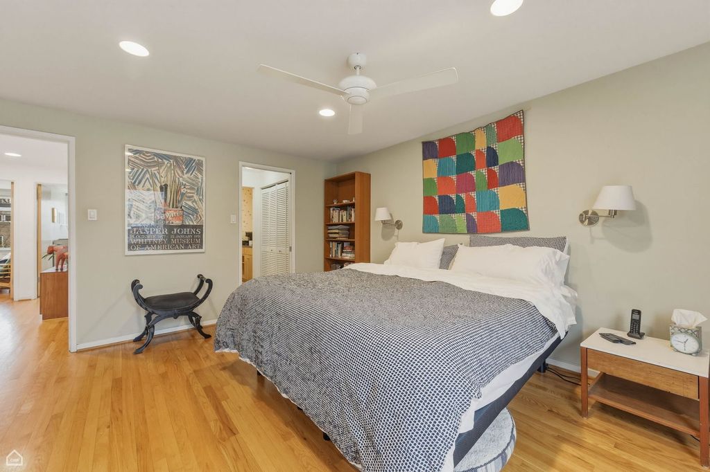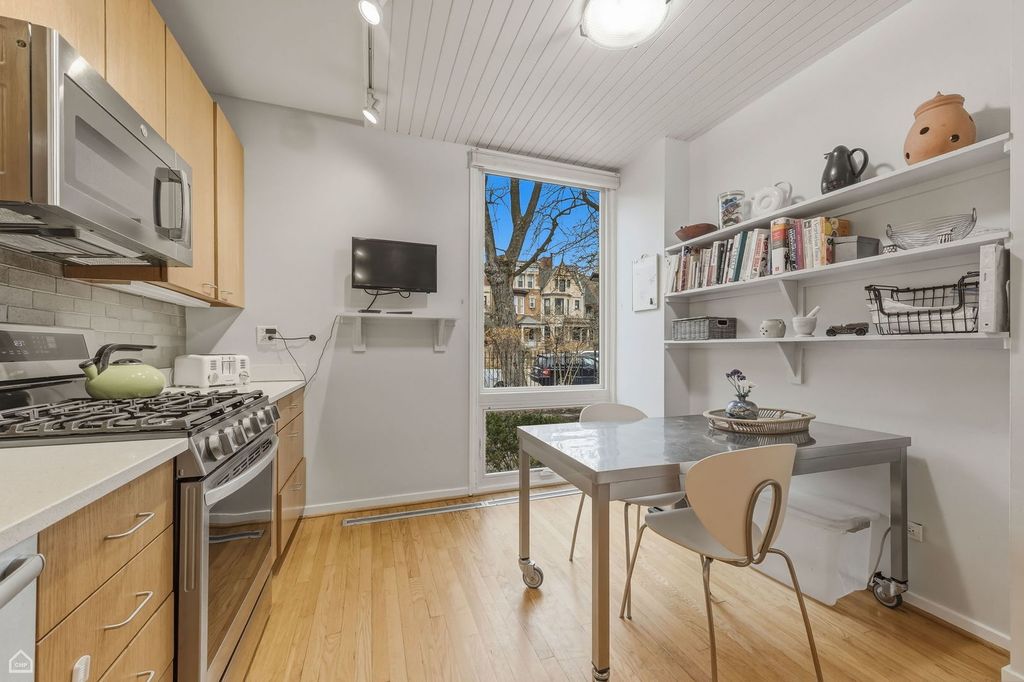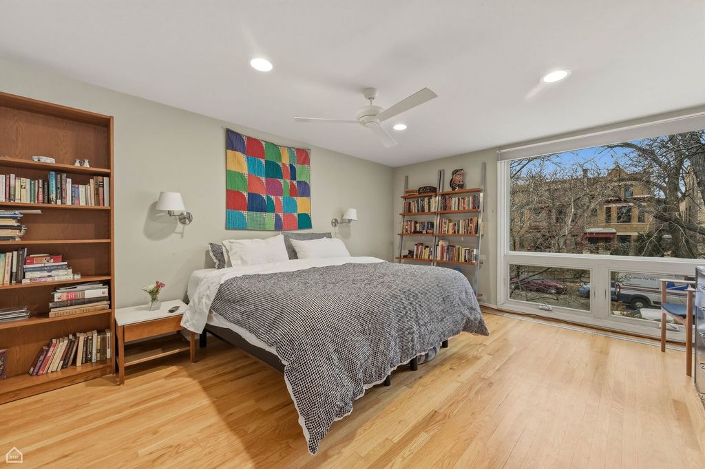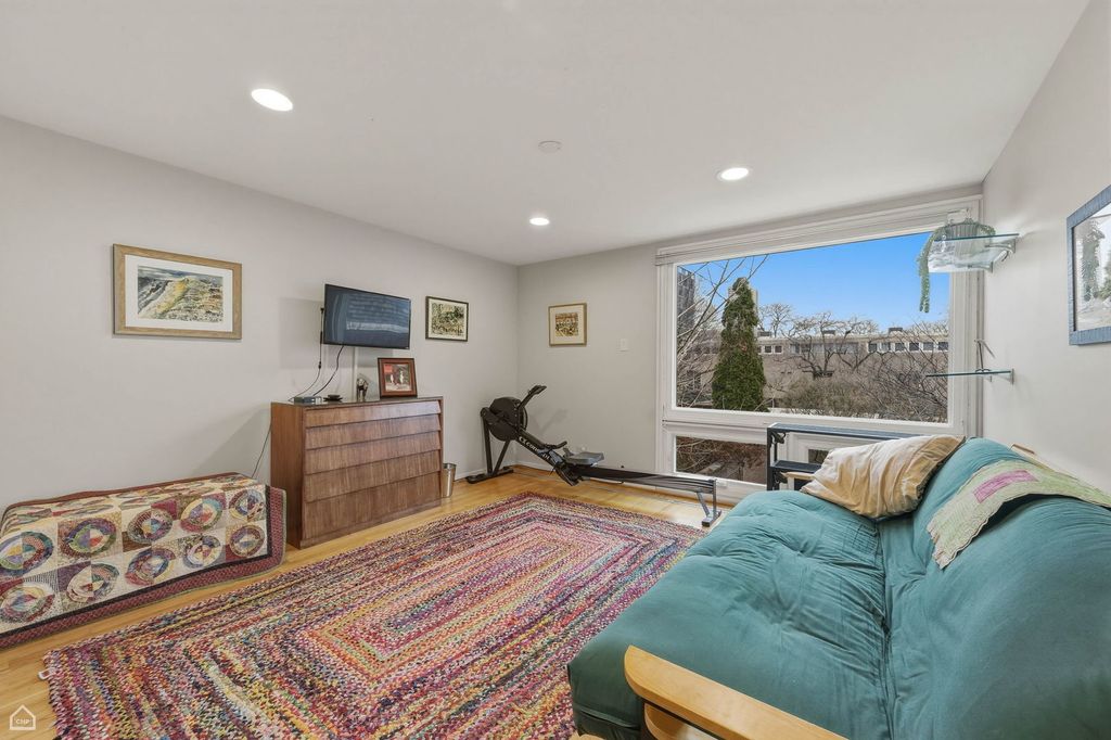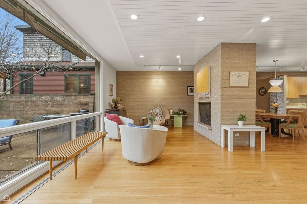 A wonderful combination of impeccable mid-century style and unbeatable location, this 1959 I.M. Pei and Harry Weese designed Hyde Park townhome has it all. Perfectly located in heart of the University of Chicago campus neighborhood, it features three levels of bright, well-thought-out, beautifully designed living space. The approach to the front door is through an impressively landscaped private garden. Upon entering the home, there's a stunning view straight through the front hall and living room, out a wall of windows to the expansive verdant and shaded backyard. The main floor offers a winning open floor plan, with living and dining areas separated by a two-sided fireplace, a modern eat-in kitchen, along with private space provided by a cozy office/den that could function as a fifth bedroom if needed. Upstairs, there are four generous bedrooms, all with great views through floor to ceiling windows, and two upgraded baths. The primary bedroom is the largest and features an ensuite bath with a full vanity and large walk-in shower. The basement is finished with a large family/recreation room, a spacious bright laundry room, and copious storage. Out back, the gorgeous, professionally designed and landscaped private yard with mature plantings provides space for outdoor dining and extensive gardening opportunities. At the back of the yard is a two-car garage, the only one of these celebrated townhomes to have one. Additional parking is available along the back drive to the garage. This home has been lovingly maintained and upgraded by its long-time owners. All windows have been replaced, insulation added, in-ground irrigation added, systems upgraded. The location is truly extraordinary. On a quiet tree-lined street with views of historic single-family homes, it is equally convenient to both Lab School locations, the University of Chicago campus, Bixler Playlot, the Metra and downtown buses, and the 55th Street shopping center. Ray School district.