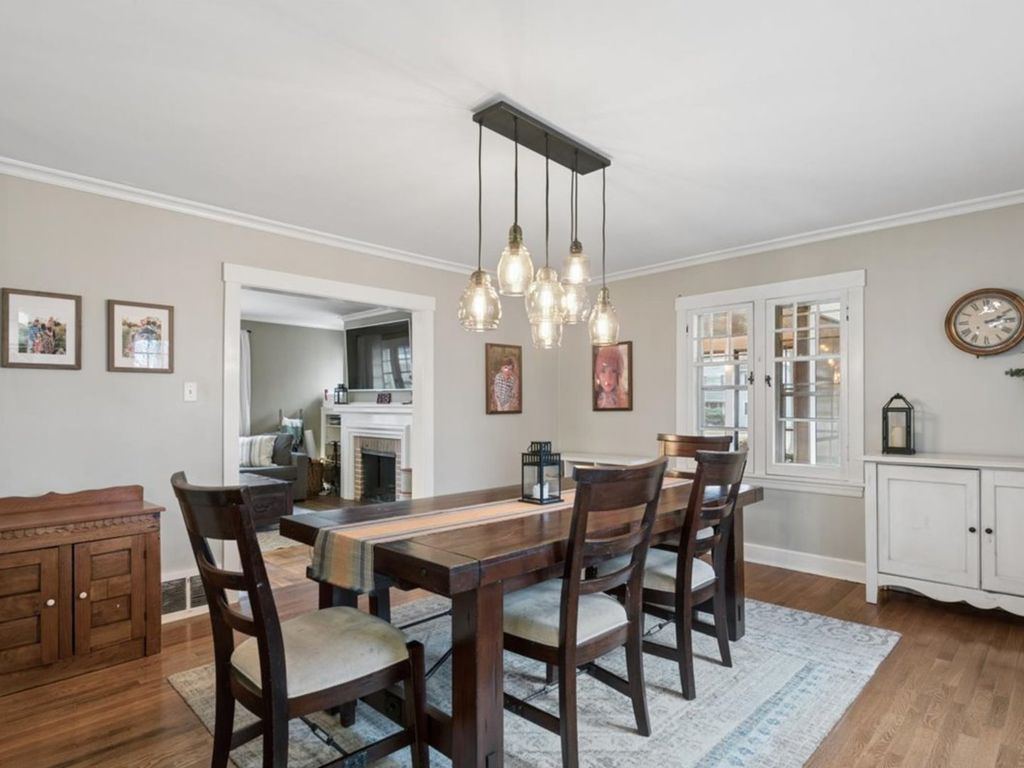 Beautifully updated 4 bed, 1.1 bath home offering the perfect blend of character and modern updates, all just steps from Uptown Park Ridge. Renovated in 2021, the main level was thoughtfully redesigned to create an open-concept kitchen and dining space ideal for everyday living and entertaining. The fully enclosed all seasons front porch leads into a warm and inviting living room featuring a classic brick fireplace, hardwood floors, and abundant natural light. The spacious dining room flows seamlessly into the updated kitchen, complete with custom white cabinetry, quartz countertops, stainless steel appliances, farmhouse sink, subway tile backsplash, and a large butcher block island with seating. A charming breakfast nook overlooks the backyard. Upstairs you'll find three well-sized bedrooms, including a spacious primary bedroom, plus an updated full bath. The finished basement offers additional living space perfect for a family room, playroom, a fourth bedroom or home office, along with generous storage and laundry area. The fully fenced backyard is designed for both entertaining and everyday enjoyment, featuring a large elevated wood deck ideal for summer gatherings, grilling, and outdoor dining, open green space for play, and mature trees for shade. A long side driveway leads to a detached two-car garage and provides additional outdoor flexibility. Prime location walking distance to the shops, restaurants, Metra, parks, and schools of Uptown Park Ridge. Move-in ready and perfectly located, this is one you don't want to miss.